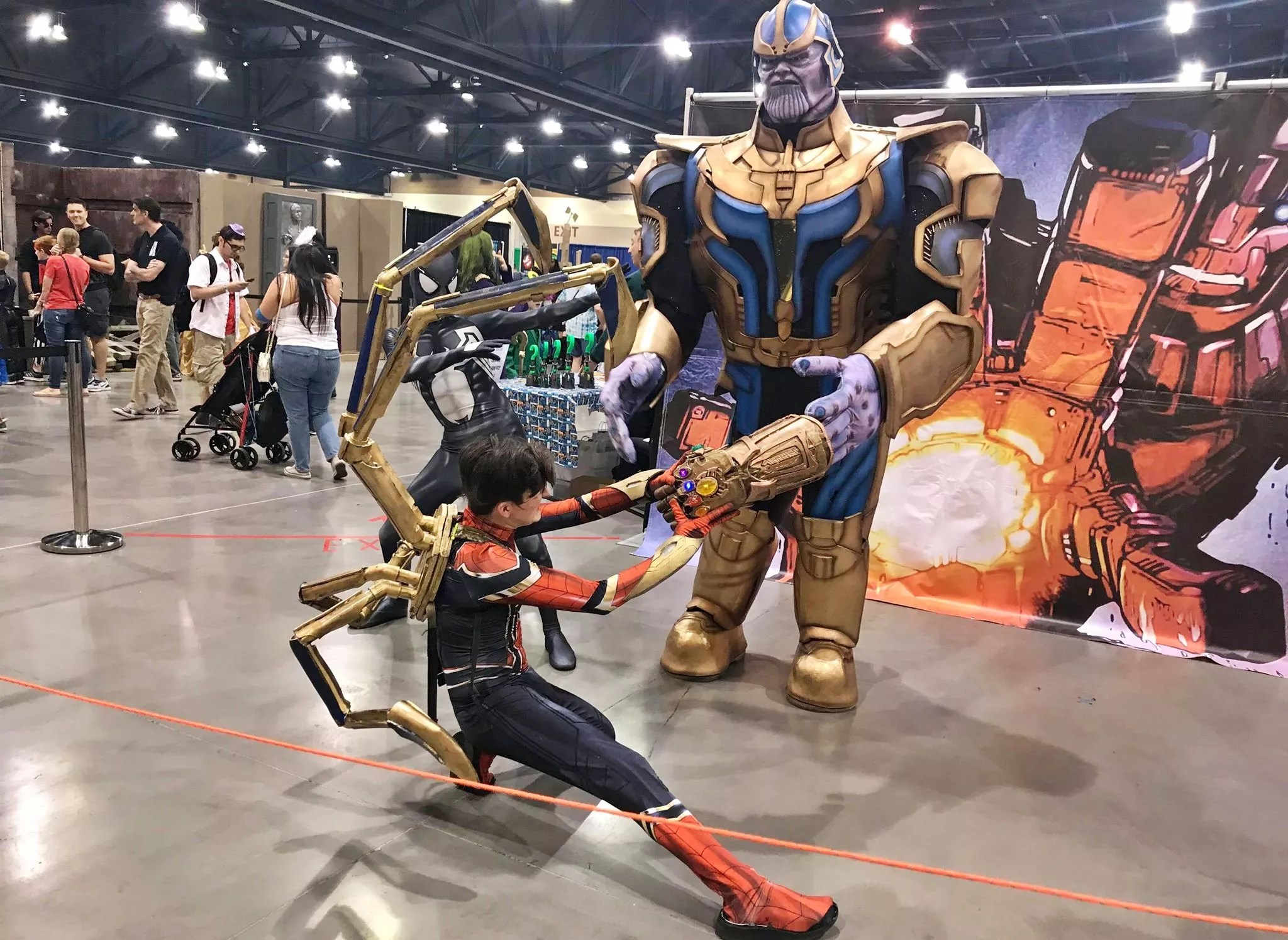 One of the biggest moments of Fan Fusion’s annual Masquerade Costume Contest came when this troupe of local cosplayers recreated the “Star-Spangled Man With A Plan” music and dance sequence from Captain America: The First Avenger. It was a rousing affair involving six USO Girls and others dressed as Cap, his on-screen love interest Peggy Carter, and even Thanos. The whole thing was the brainchild of Valley resident Hayl Daugherty, who worked with her friends Emma Bowen, Allison Daugherty, and Jennica Dombrowski to create the costumes. “This was my project, but I definitely couldn’t have done it without my amazing pit crew,” Daugherty says. Gabriel Espino’s Thanos towered over Phoenix Fan Fusion. Cassandra Jenkins