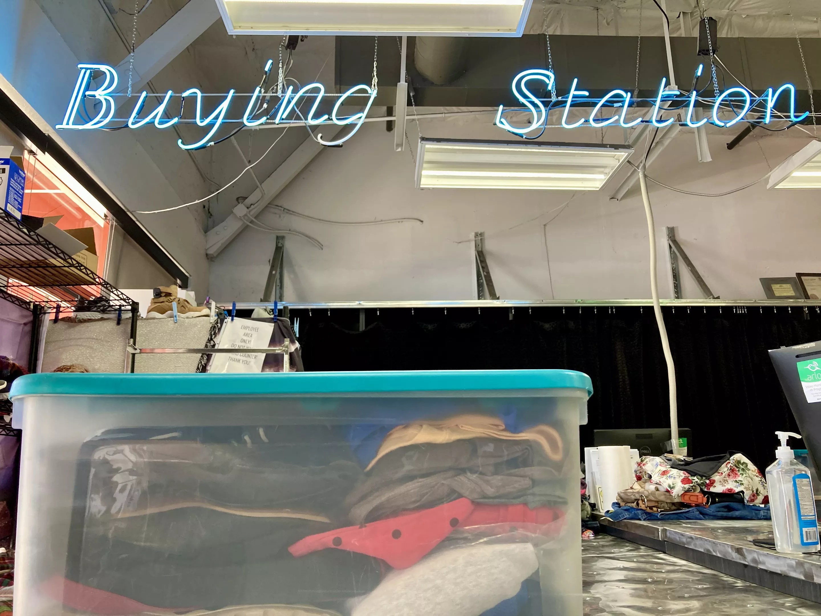 The COVID-friendly buying station at Name Brand Exchange.