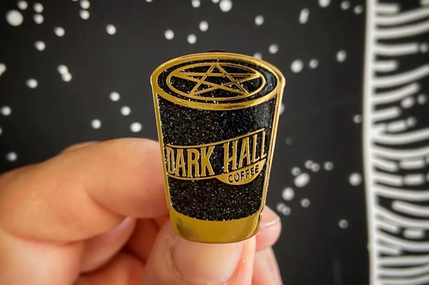 15 E. Southern Ave., TempeIf you want “looks that kill” for an affordable price, this Tempe retro secondhand boutique is the place. At Rocket A Go-Go, you’ll find trendy vintage outfits catering to the punkabilly, pin-up and alternative crowd. Find an outfit to wear before you head across the street for a punk rock show at legendary dive bar and venue, Yucca Tap Room. The pentagram latte art enamel pin from Dark Hall Coffee. Emily Spetrino