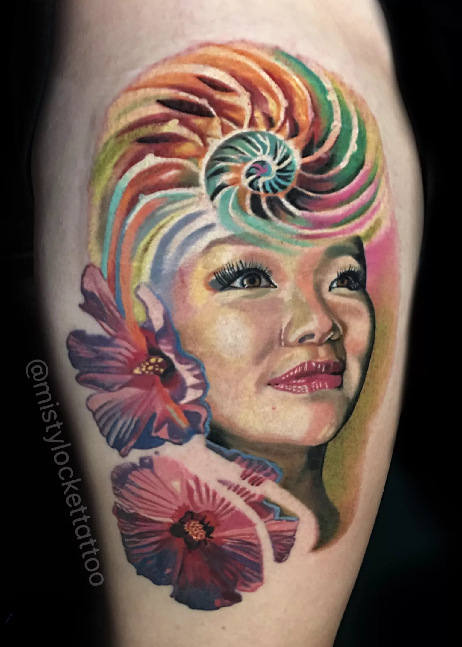 As time grew, so did her resilience, style and portfolio. Specializing in high-contrast realism and surrealism, Locket has a style that ranges from color to black and gray and even tattoo cover-up work. Locket enjoys capturing people and creating unique backgrounds in what she describes as a “symbiosis” way. Admittedly, as a tattooer, she takes a servant role approach. Her main focus is on tattoo longevity and committing to a “less is more” ideology. Known for her attention to details, she patiently goes above and beyond to collaborate with clients to ensure they’re confident in the design before the needle hits the skin.
