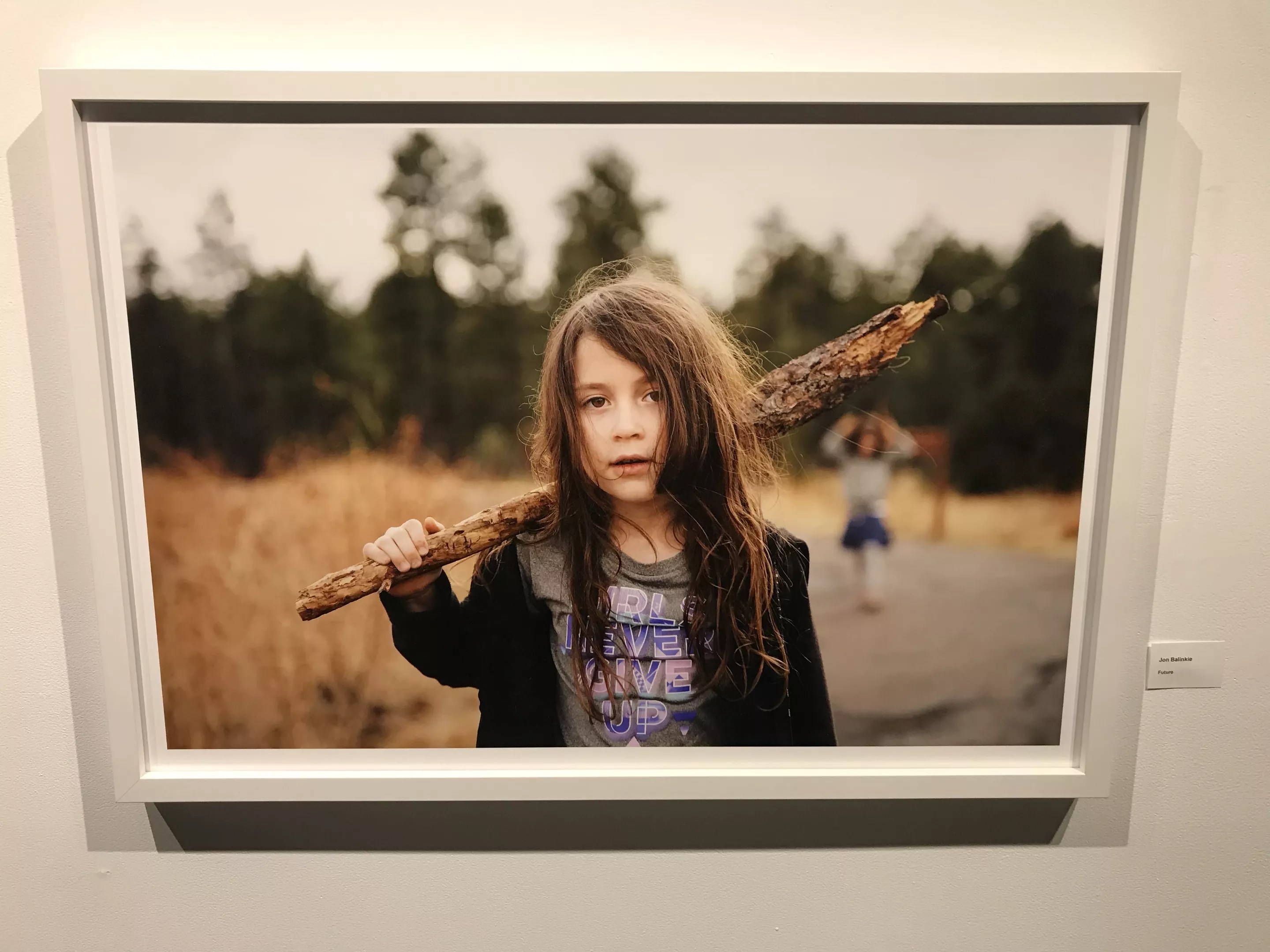 “Chaos Theory 19” also included a color photograph of a girl standing against the backdrop of a wooded area, holding a large stick over one shoulder. The stick is naturally tapered on one end, resembling either a match or a pencil. Taken by Jon Balinke, the photograph bears a title that was especially prescient on Friday night, as Congress was preparing to appoint a new Supreme Court justice despite accusations of sexual assault against him. Balinke’s piece is called Future.