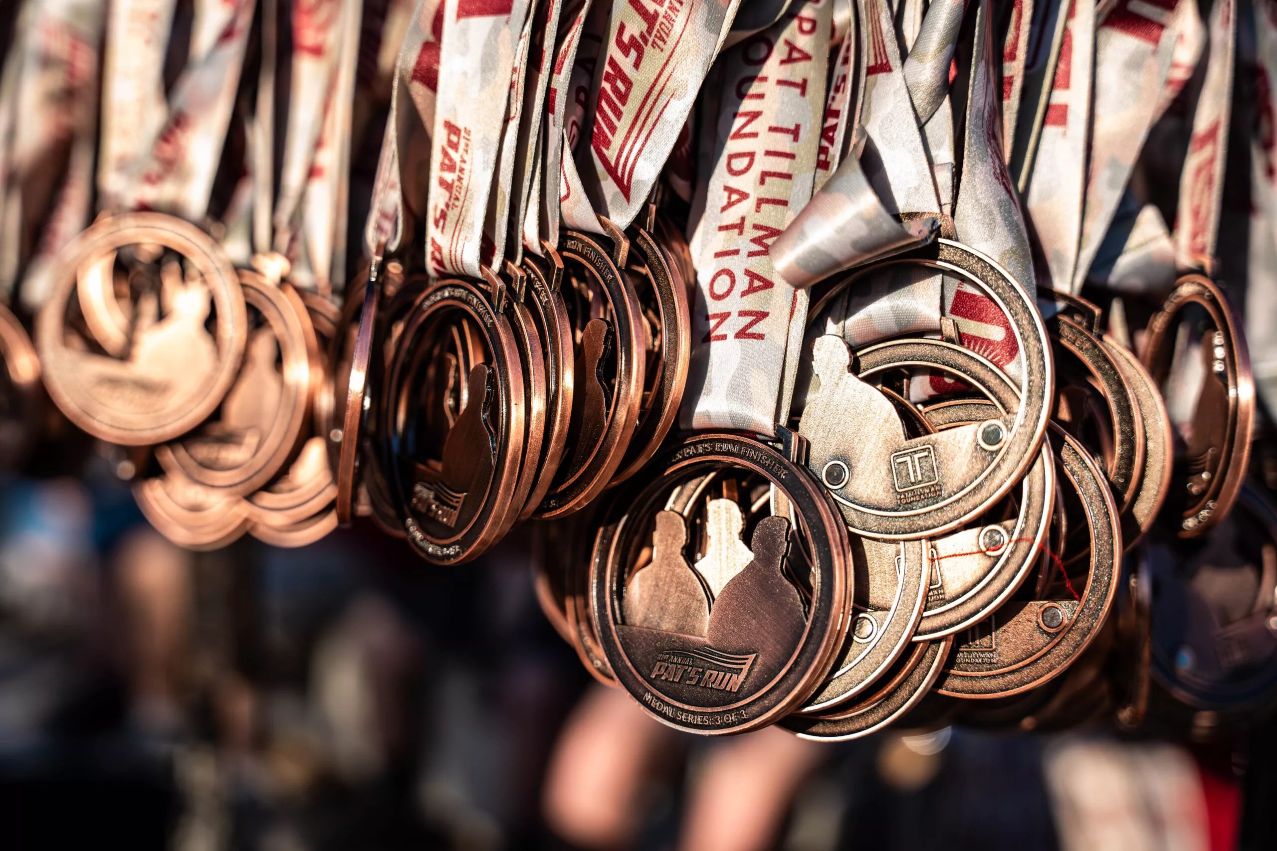 The medals from the Pat Tillman Foundation featured a silhouette of the late football player and acknowledged that the participant finished the race.