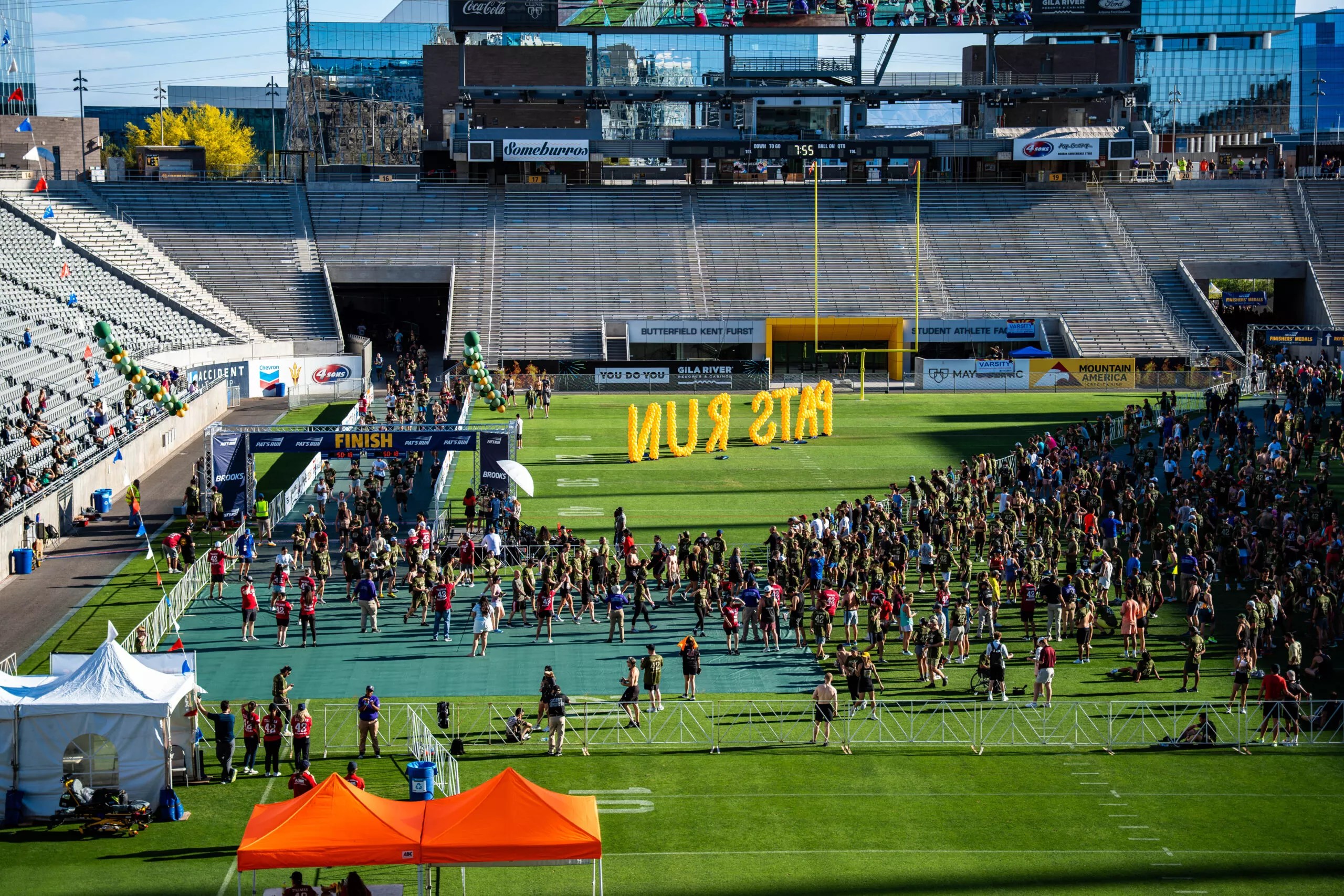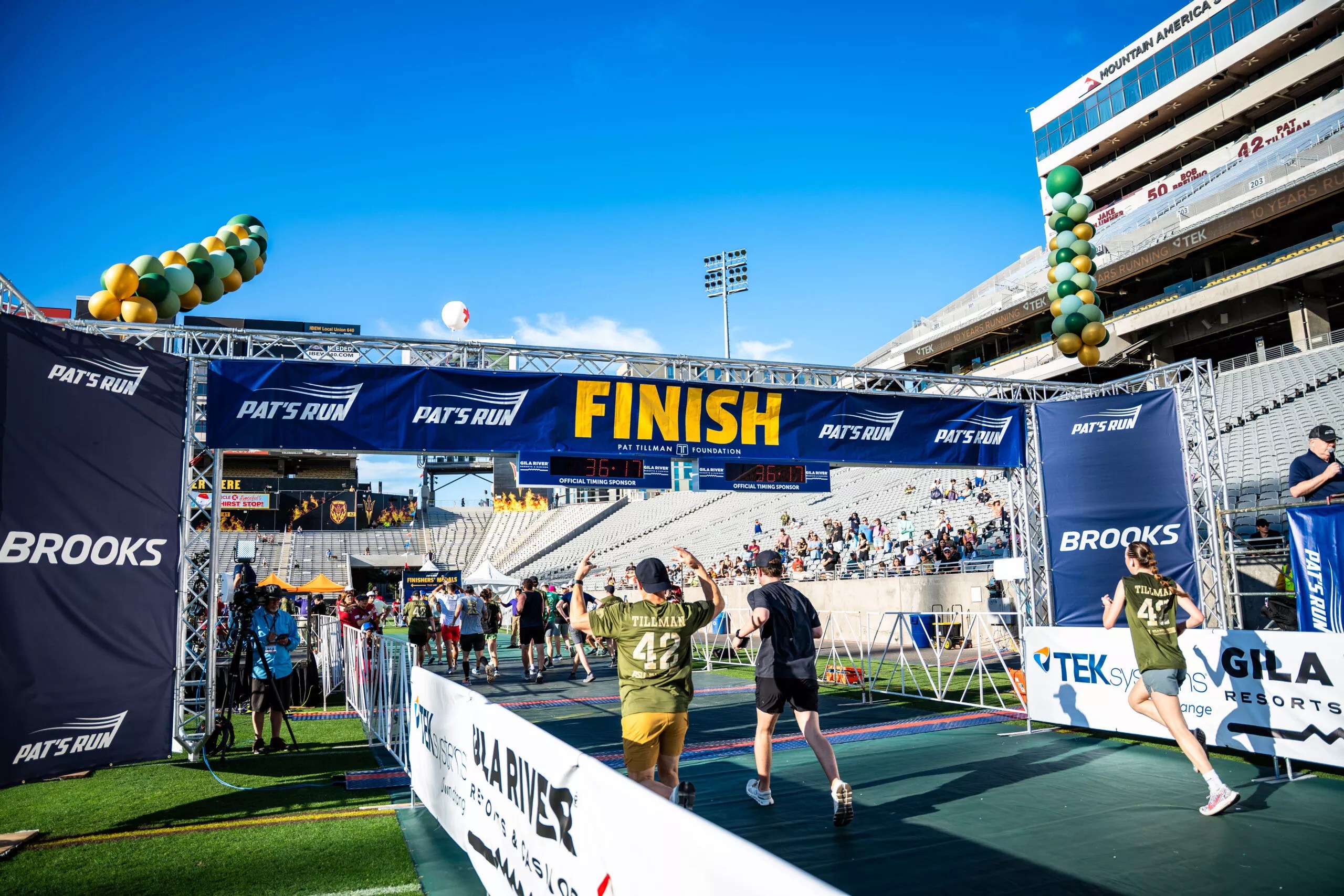 The finish line of Pat’s Run is the 42-yard line, which is in honor of Pat Tillman’s uniform number at ASU. Runners can spend time on the field afterward.