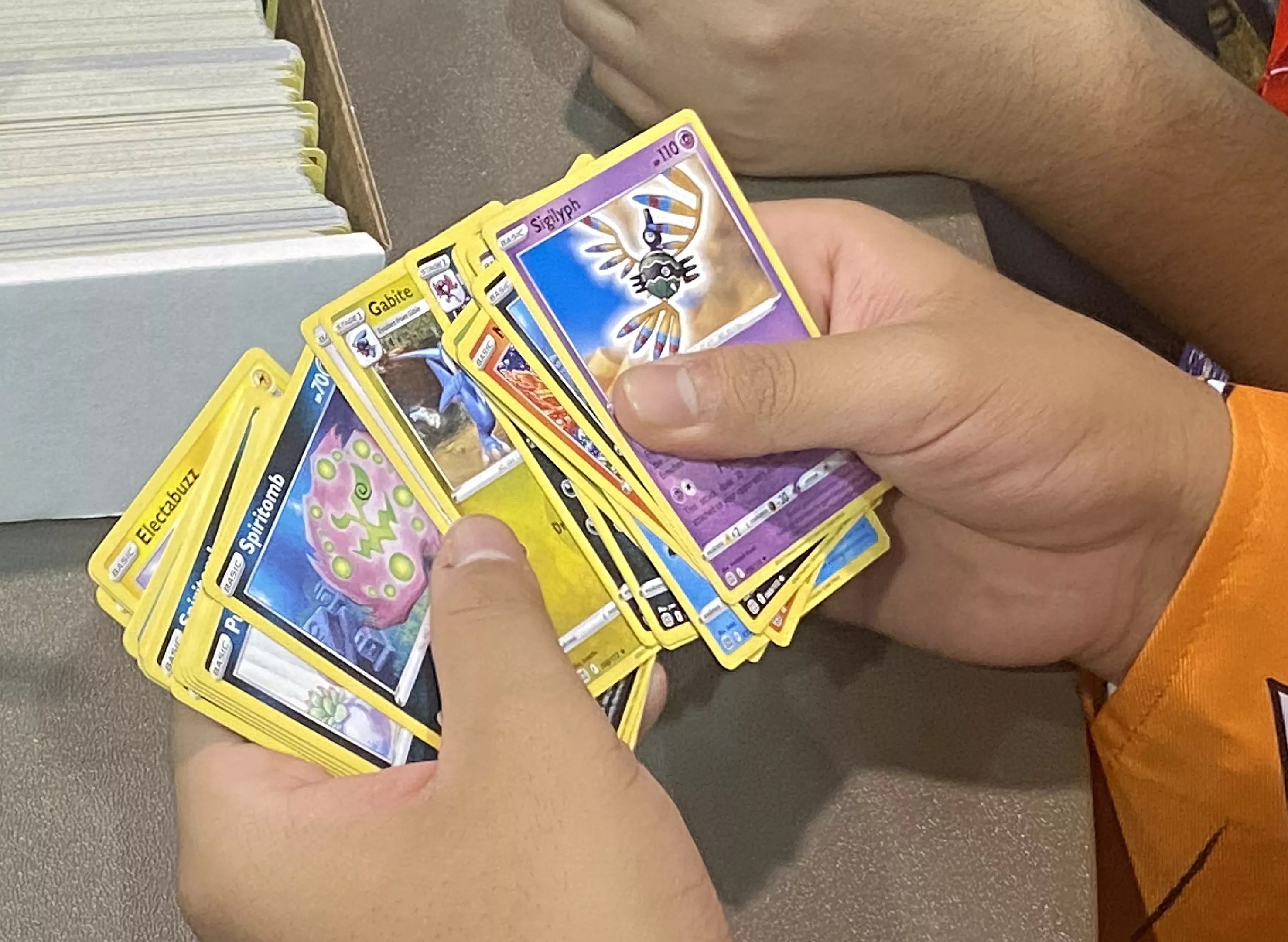 An attendee of Game On Expo looks through their collection of cards from the “Pokémon Trading Card Game.” The three-day event featured tabletop gaming sessions in addition to arcade titles and numerous popular consoles.