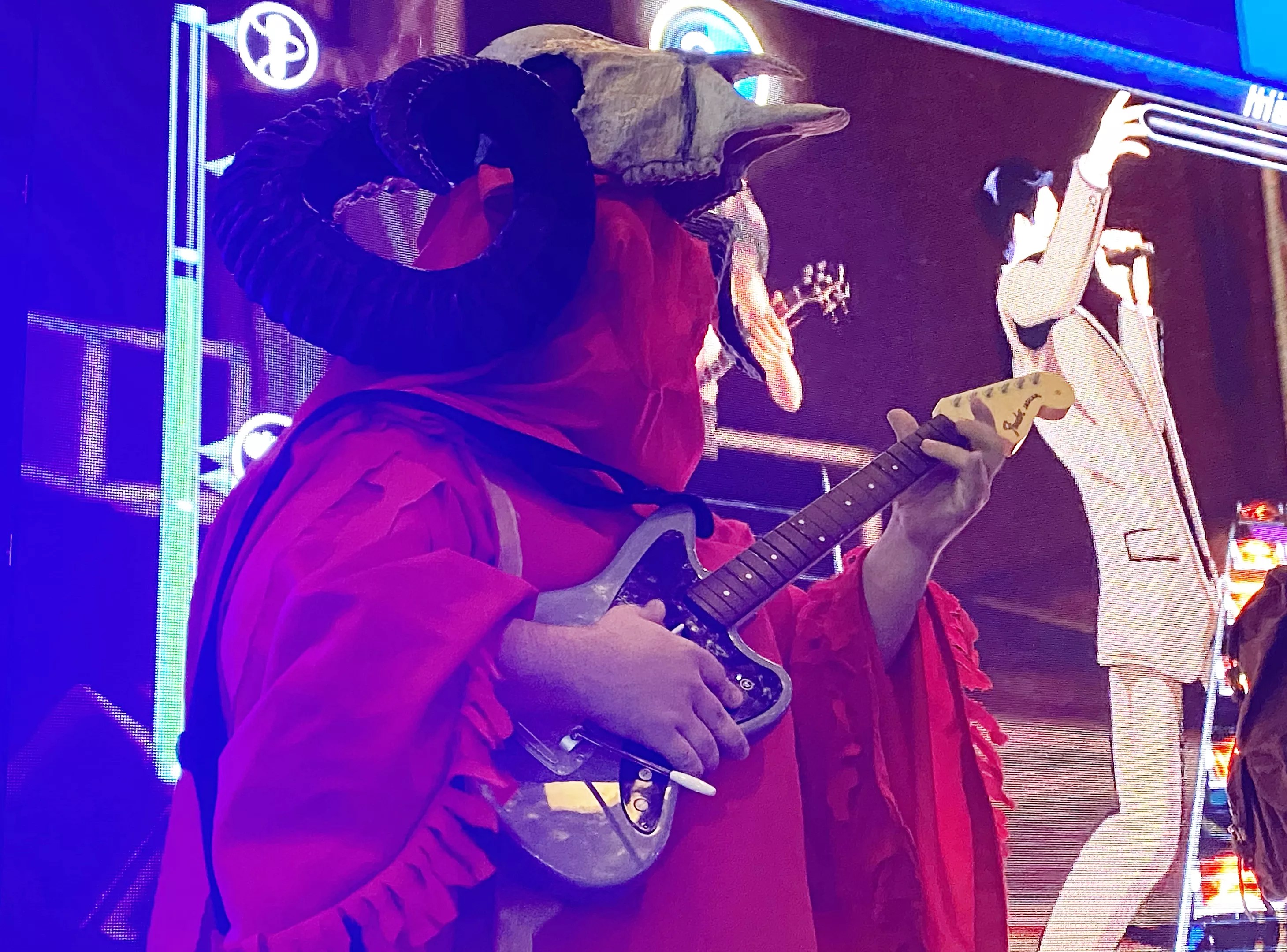 Glendale resident and cosplayer Will Smith plays participates in a “Rock Band” karaoke session, which was one of the highlights of Game On Expo 2023.
