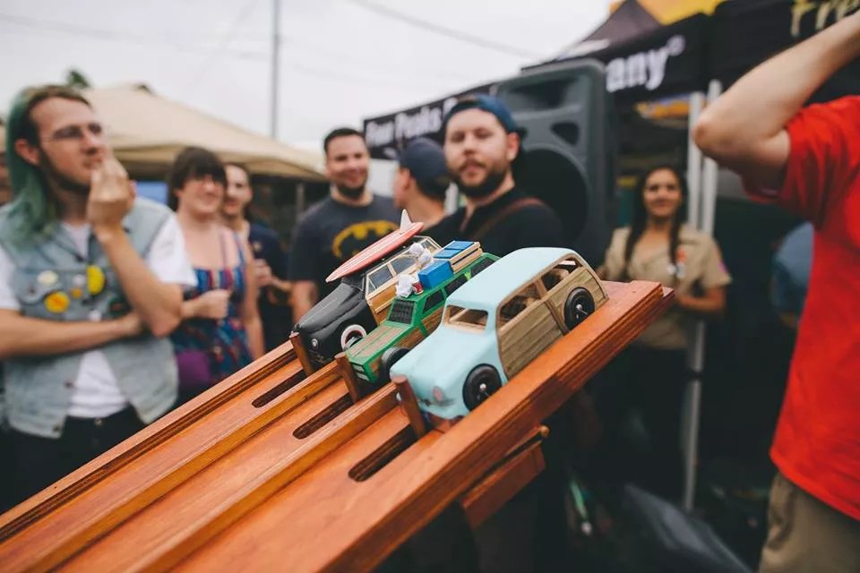 As its name implies, the free event riffs on the Pinewood Derby, the traditional Cub Scouts activitiy involving custom-building a 5-ounce wooden car and sending it hurtling down a lengthy track in pursuit of honor and glory.