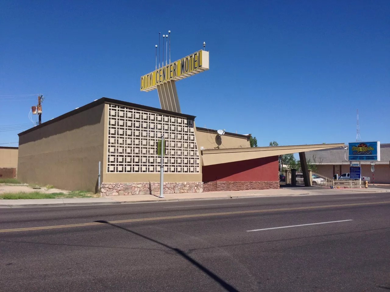 The building is located at 600 West Van Buren Street, near a strip of Grand Avenue renowned for its offbeat arts and culture, plus historic preservation efforts. Together with an annex, it once formed a travel destination called the City Center Motel, which was built with space-age Google design elements including a distinct angular porte cochere that juts out near the entrance.