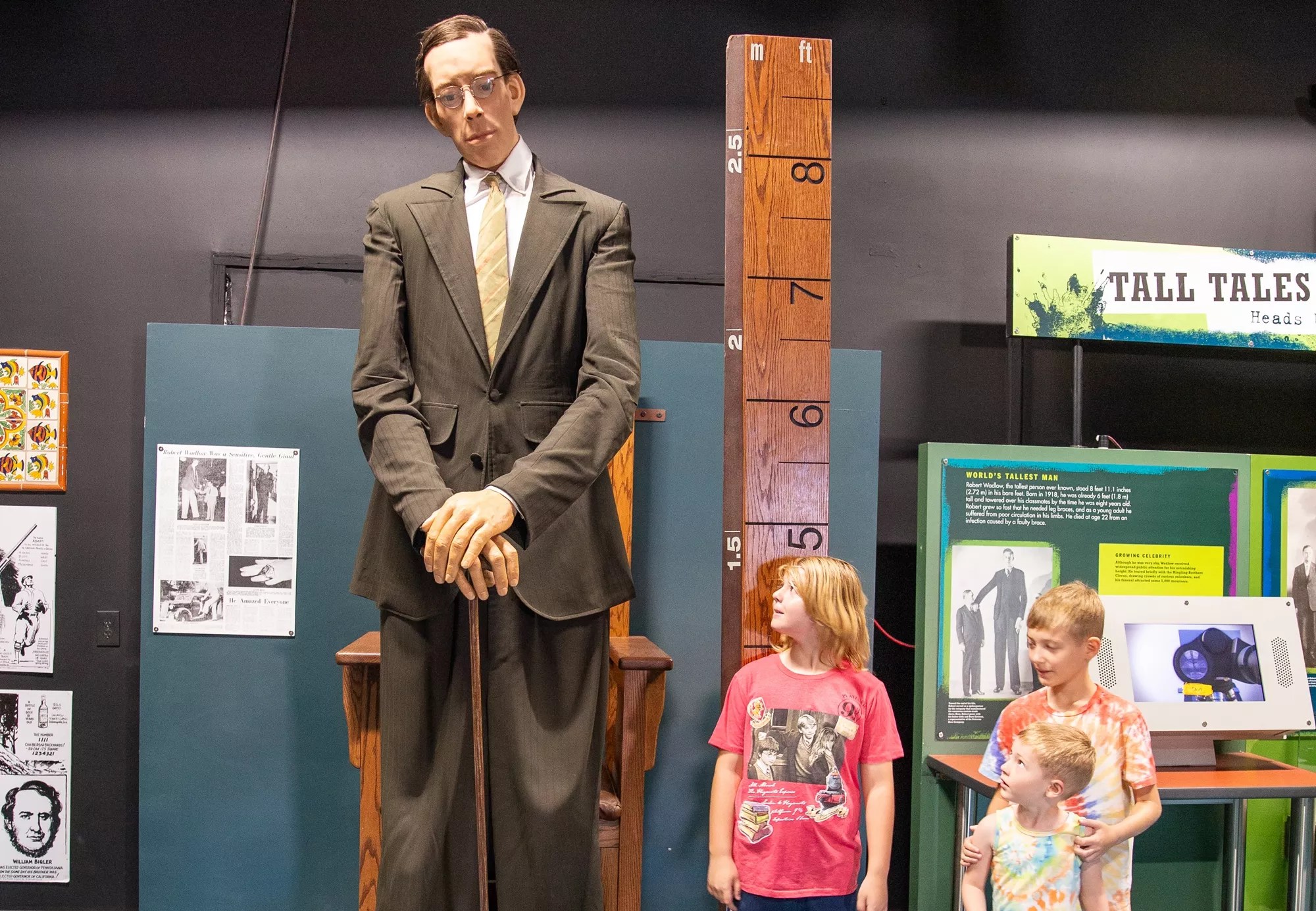 Patrons of Ripley’s Believe It or Not! in Scottsdale pose with a statue of Robert Wadlow, the world's tallest man.