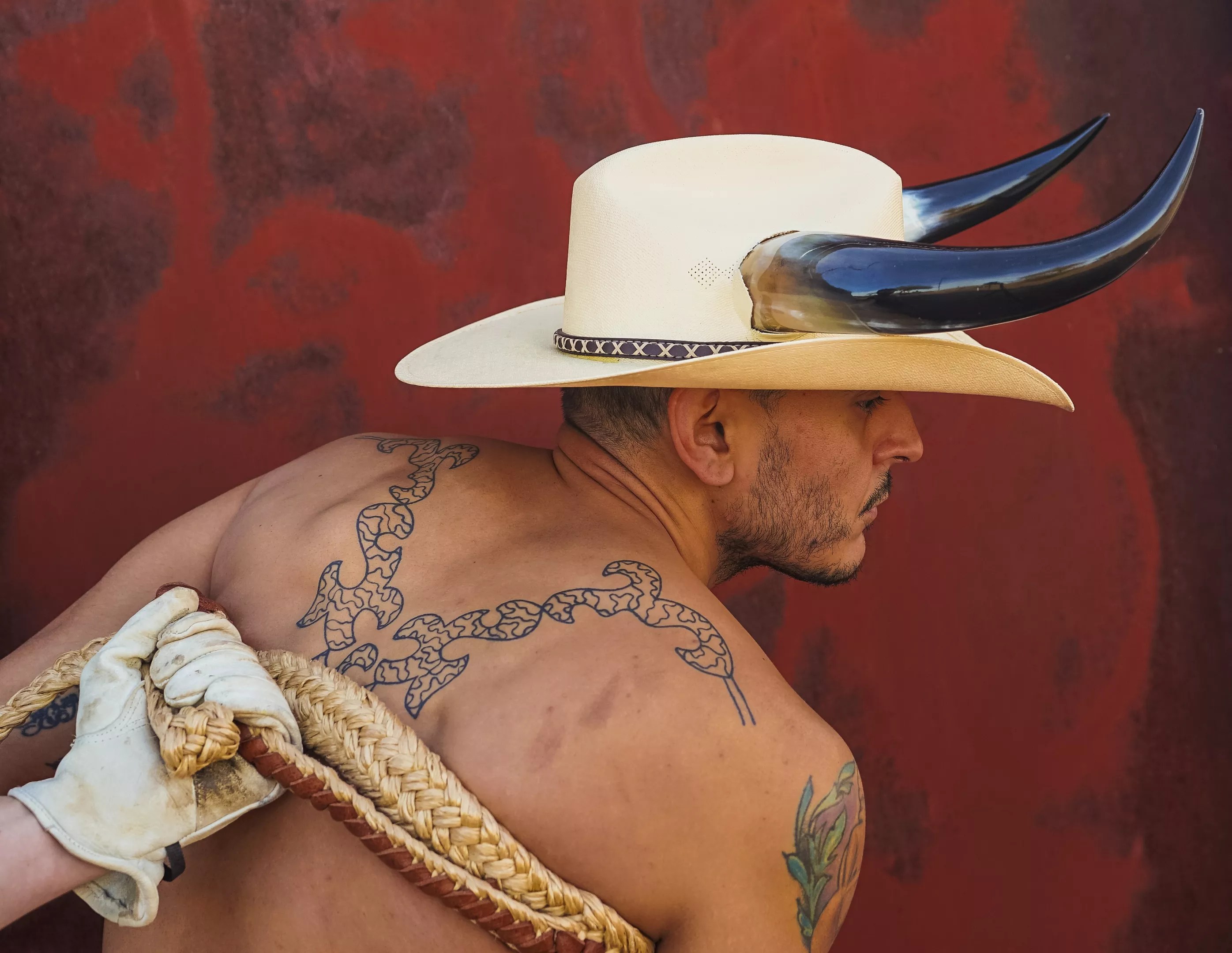 Definitely. And my work touches not only on masculinity, but the lack of representation of people of color in the rodeo, and racism. One of the main photographs in the show, there is a white hand on my back, holding on to me by rope. How do we combat that, and do it safely? How do we protect one another?