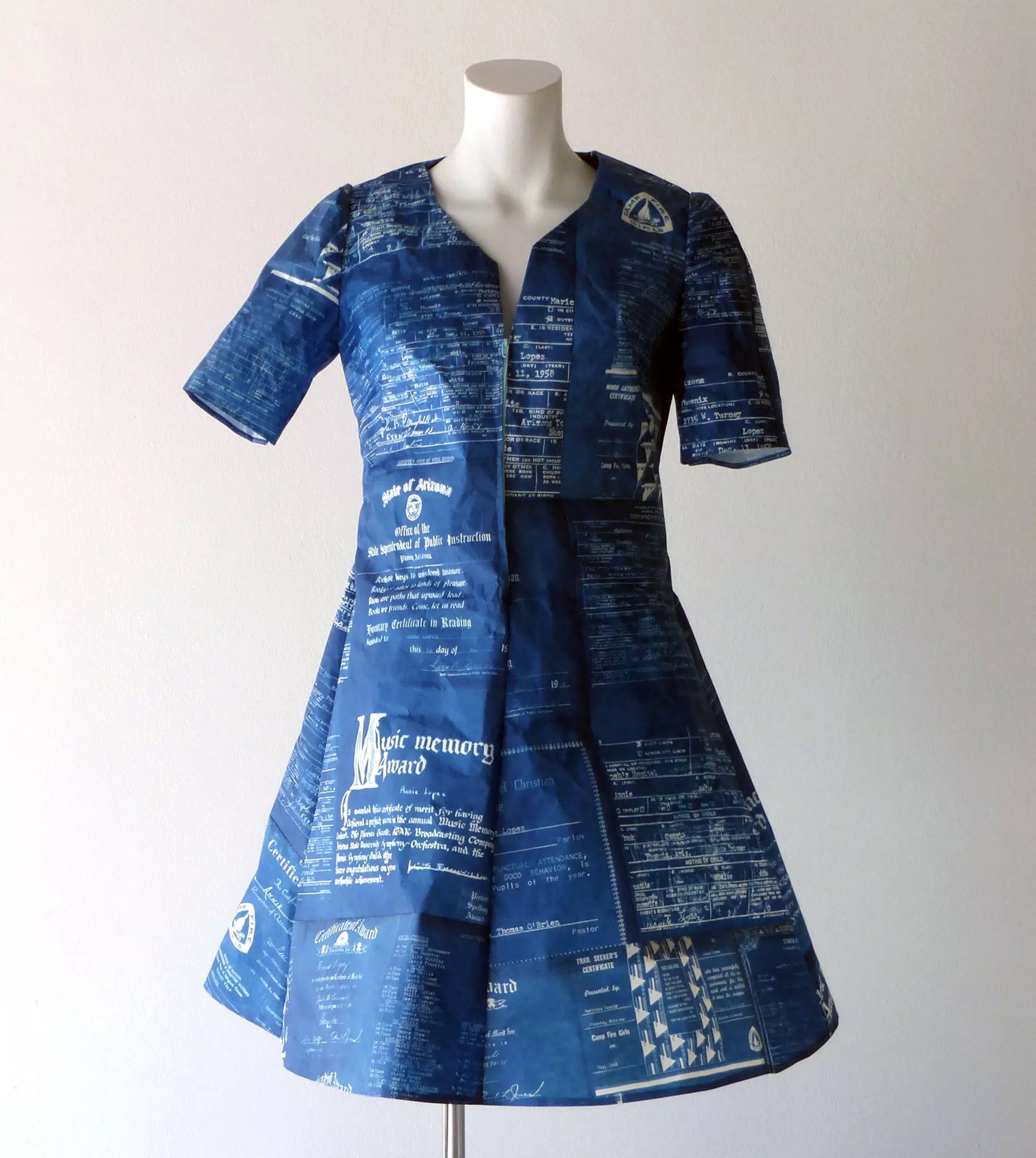 Annie Lopez made one of her first dresses around the time of SB 1070. Titled Official Proof, the dress was covered in images of documents tied to her identity, including her birth certificate and grade school awards. In 2013, she skewered politicians Brewer and Arpaio with a piece called Show Me Your Papers, and I’ll Show You Mine. “I think there was a shift,” Lopez says of SB 1070 days. “People were a bit more vocal, which helped to make artists feel like they could express their opinions.” Today, the fourth-generation Phoenician is working on a new dress that includes imagery from her maternal grandmother’s identification cards, plus language from SB 1070 that describes immigrants as “aliens.”