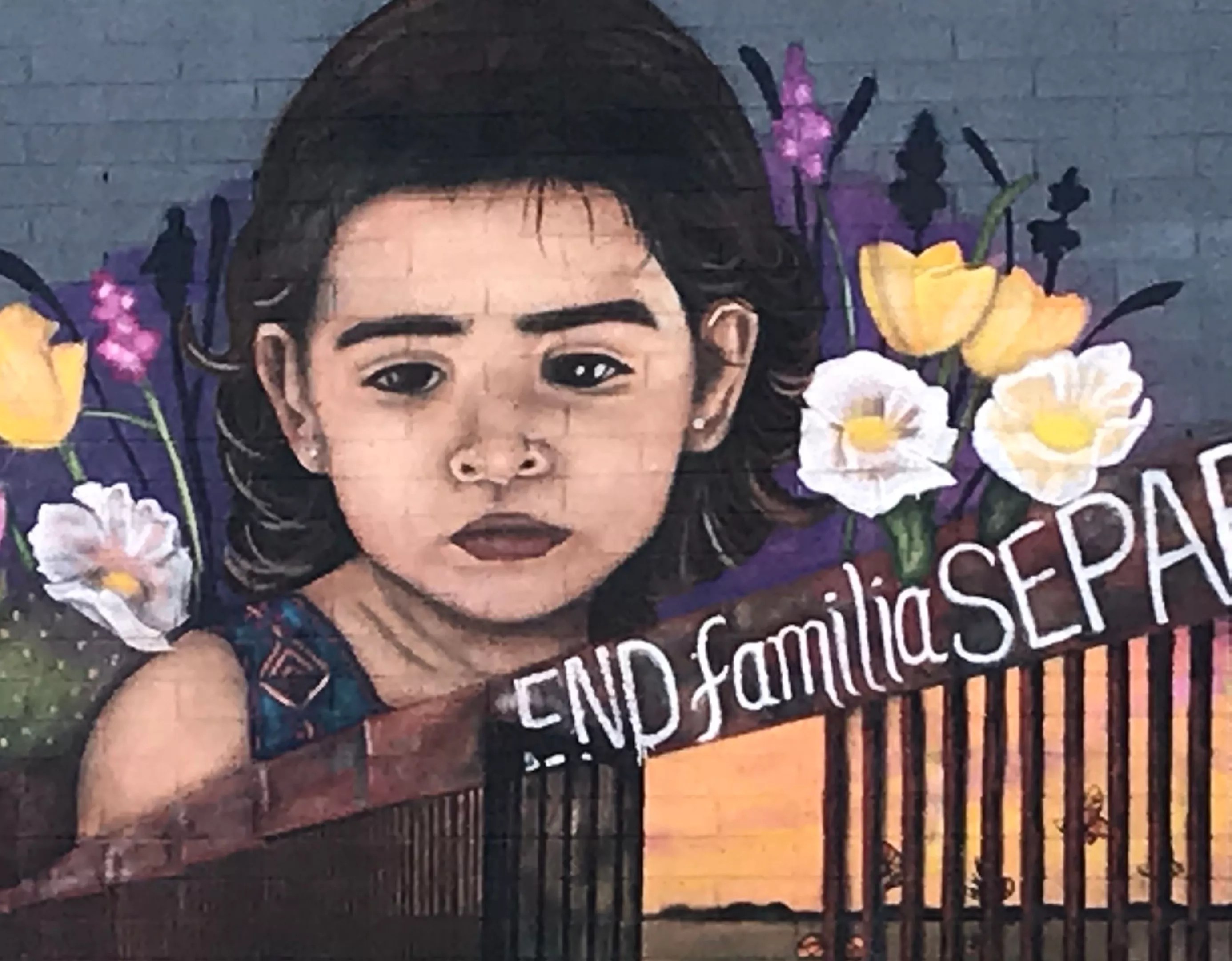 Part of La Morena’s mural decrying family separation at the border. Lucinda “La Morena” Hinojos