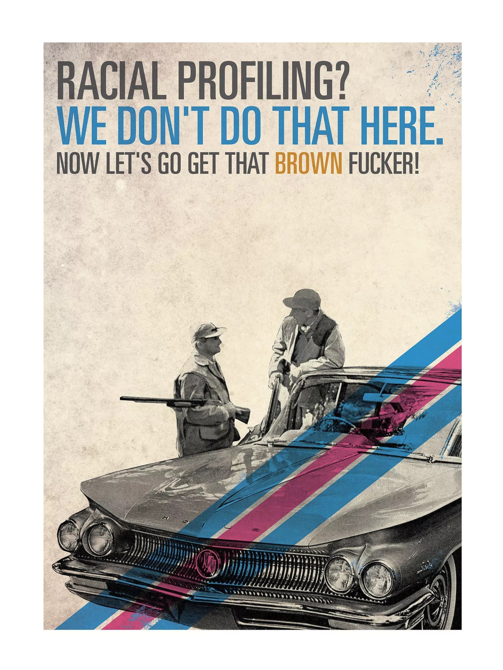Safwat Saleem is an artist born in Pakistan who still recalls the hatred directed against Muslims in the aftermath of 9/11. He explored the wider context of racism for a series of campaign-style posters he called “A Bunch of Crock.” He was halfway through the naturalization process at the time. One piece featured two men standing near a car while armed with guns. Above them Saleem wrote: “Racial Profiling? We Don’t Do That Here. Now Let’s Go Get That Brown Fucker!” “That was the first political art I made,” Saleem recalls of the series. “In some ways, I feel a worse existential threat now, because the racism is coming from the presidential level.”