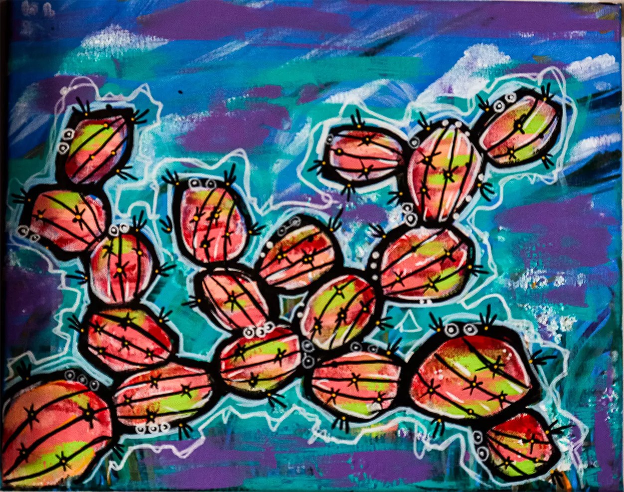 Sosa’s style is inspired by his graffiti roots and love for Arizona’s nature and culture. His artwork is centered around Arizona’s most well-known things in the desert: cacti and colors. He creates artwork with many layers of colors, lines, and textures to express the beauty of street art meeting the Arizona desert.