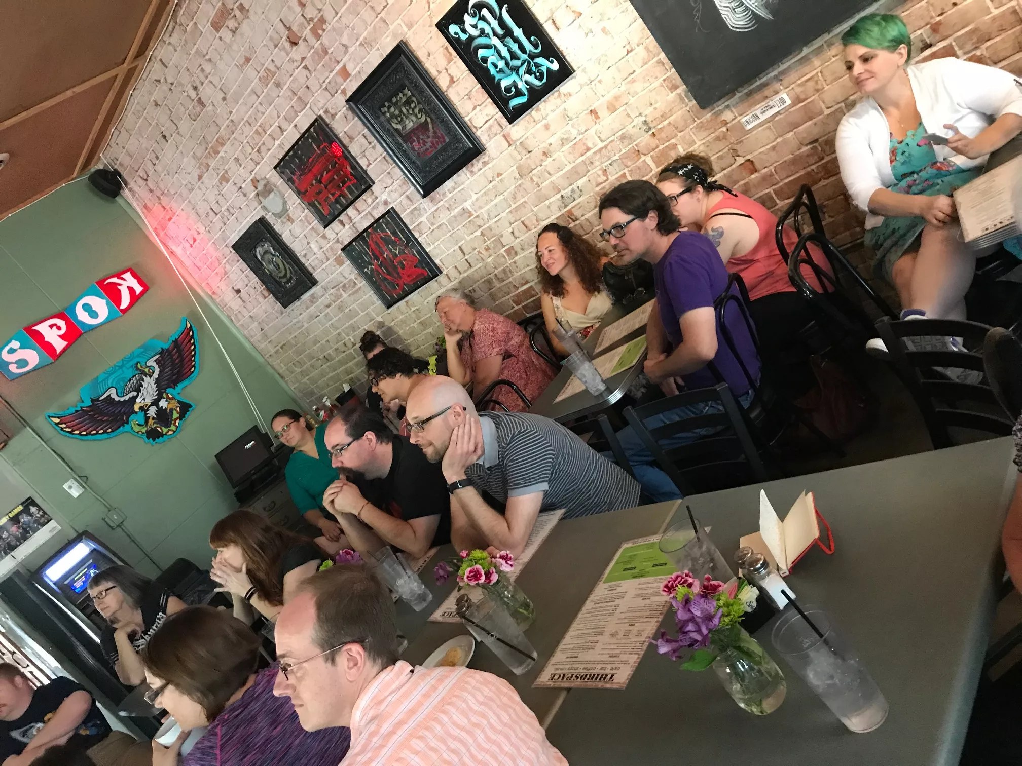 Seated at tables where people typically drink beer and listen to live music on weekends, they had agreed ahead of time to keep perfectly quiet so they could hear their friend Stacey Gordon voice the newest puppet on the long-running PBS show.