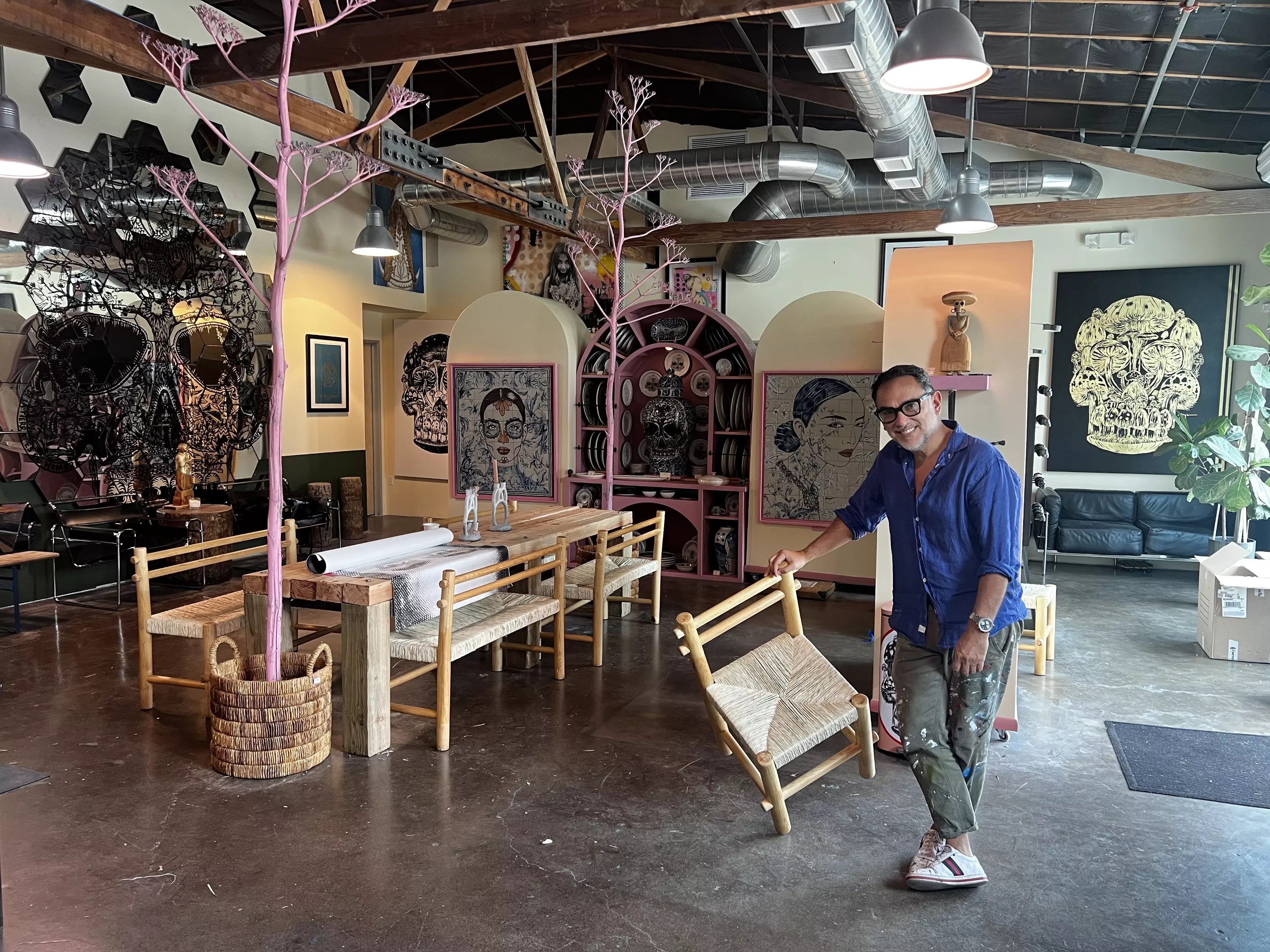 Gennaro Garcia built a custom table for hosting dinners in his Grand Avenue studio.