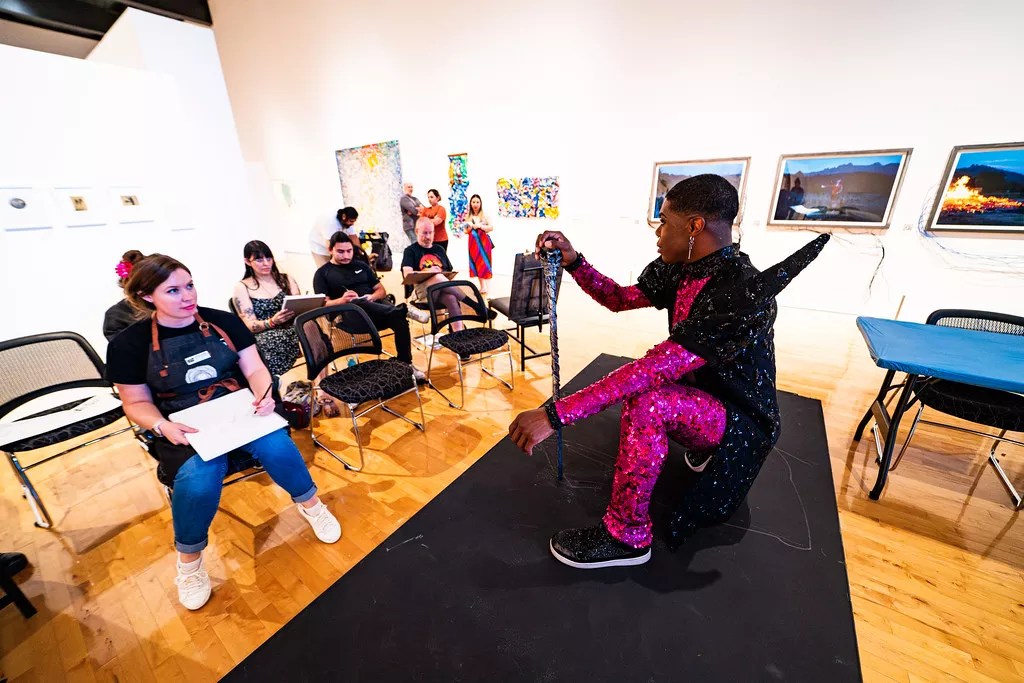 The free event drew artists of all skill levels to the lakeside arts space for a time of sketching local drag entertainers including Eva Angelica Stratton and Savannah Stevens. Visual artists Rachel Bess and Matt Dickson were on hand to lead the open-studio style drawing sessions.