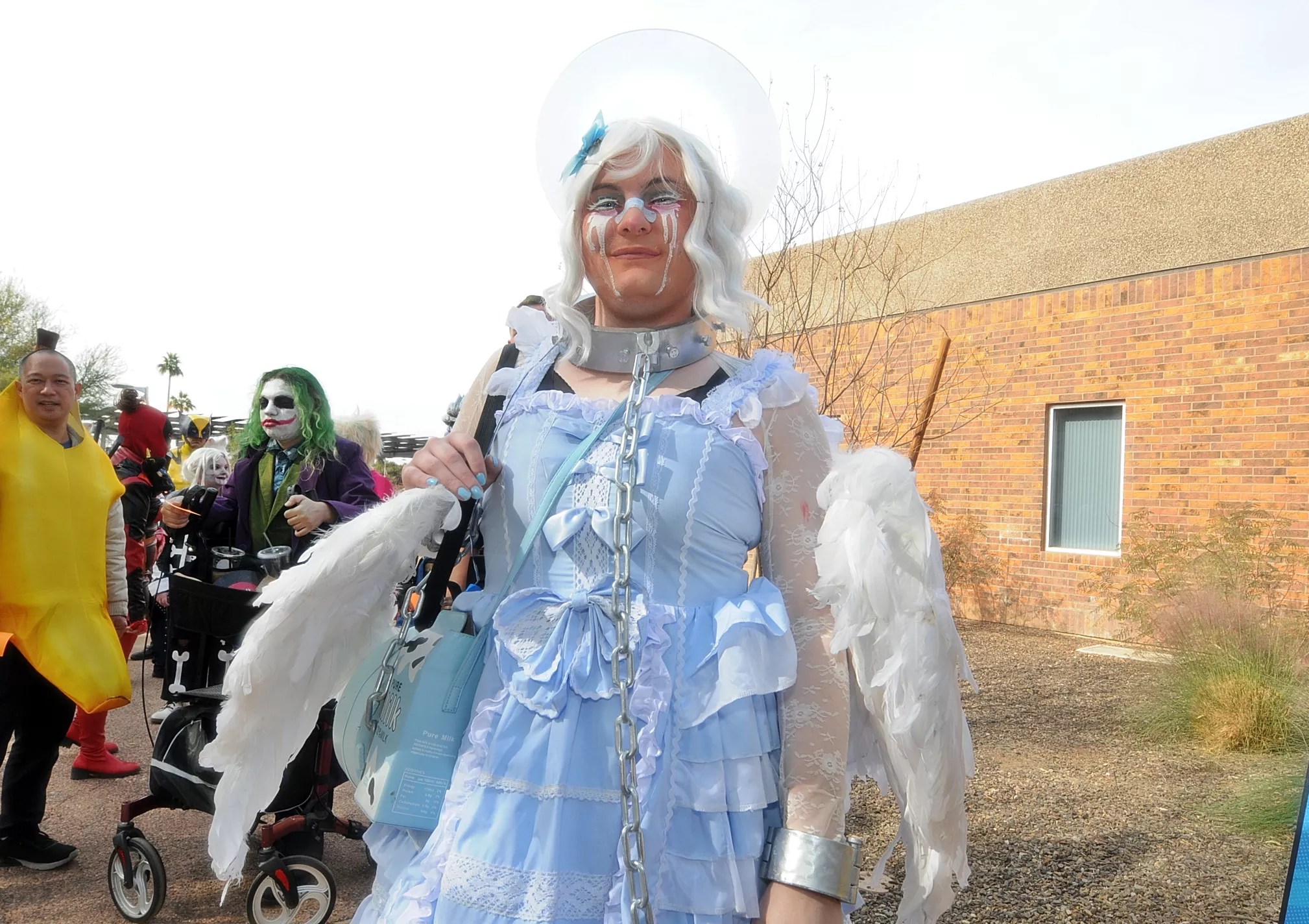 Alongside a range of nerd-friendly favorites – including Ghostbusters, various Jedi and more than a few Deadpools – there were standouts like Glendale cosplayer Jagger Leon’s impressive mash-up of “Mortal Kombat” ninja Sub-Zero and the Spartan armor from the “Halo” game series. Another highlight was Tempe resident Riley James’ original cosplay of an angel who escaped from heaven, which earned them tickets to Phoenix Fan Fusion during Tempe FanCon’s costume contest.