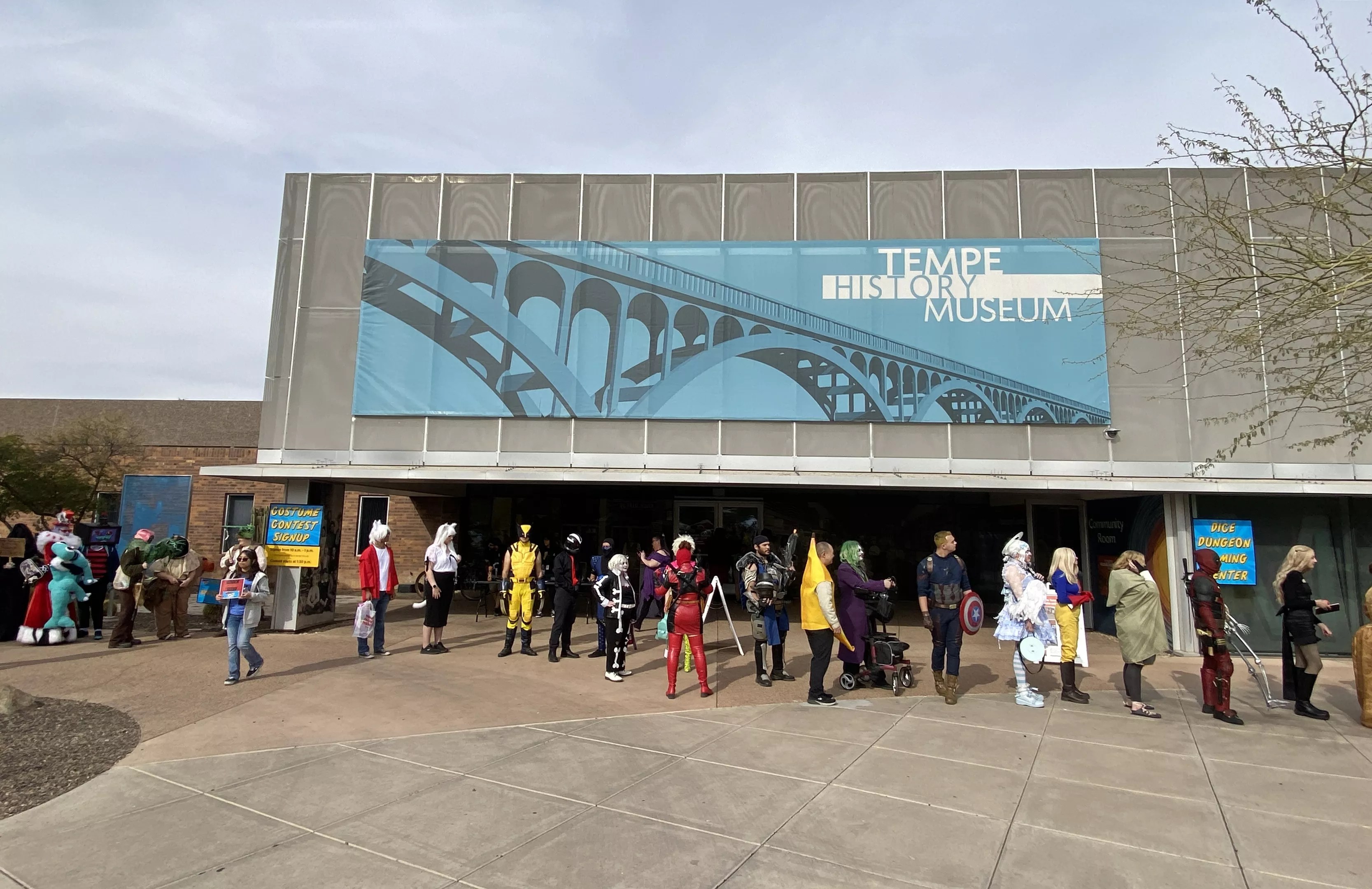 Local cosplayers waiting in line to participate in Tempe FanCon’s costume contest.