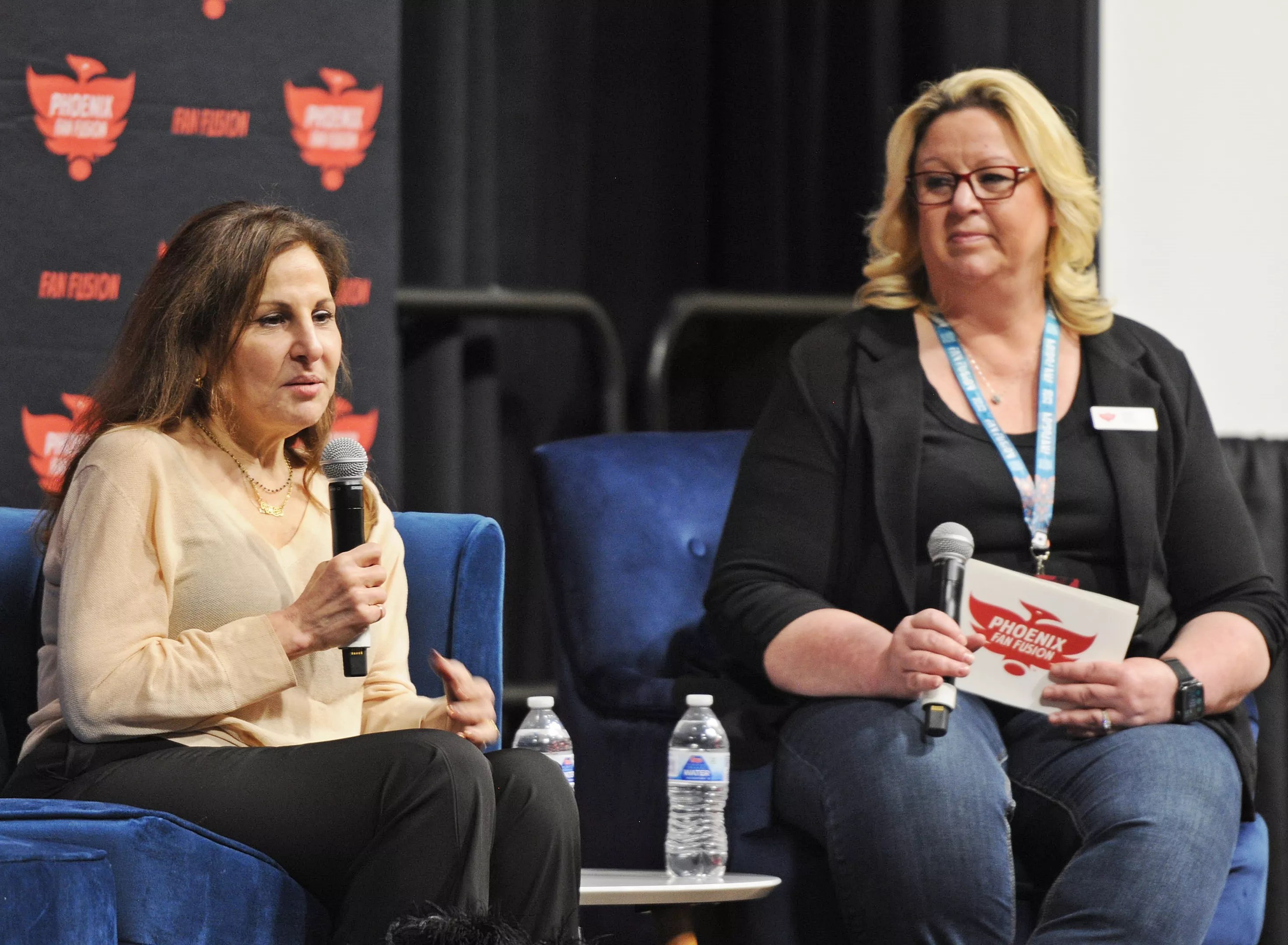 Any Whovians still hoping against hope that the Ninth Doctor might someday return to television can abandon those dreams, as it ain’t happening. As the story goes, Eccleston had a falling out with Russell T. Davies, the screenwriter and television producer who revived “Doctor Who” in 2005, and left after a single season. He’s repeatedly refused to reappear on the show (though you can hear him on the audio adventures created by Big Finish Productions) and still has issues with Davies. The actor reiterated that fact during his Q&A panel after a fan complimented his portrayal of the Ninth Doctor. Ever the gentleman, Eccleston said Davies was the driving force behind the character. “He had the vision, [I] was just the tip of the iceberg,” Eccleston says. “Don’t like the guy, but I have to give him credit.” Actress Kathy Najimy (left) during her Q&A panel at Phoenix Fan Fusion 2023. Benjamin Leatherman