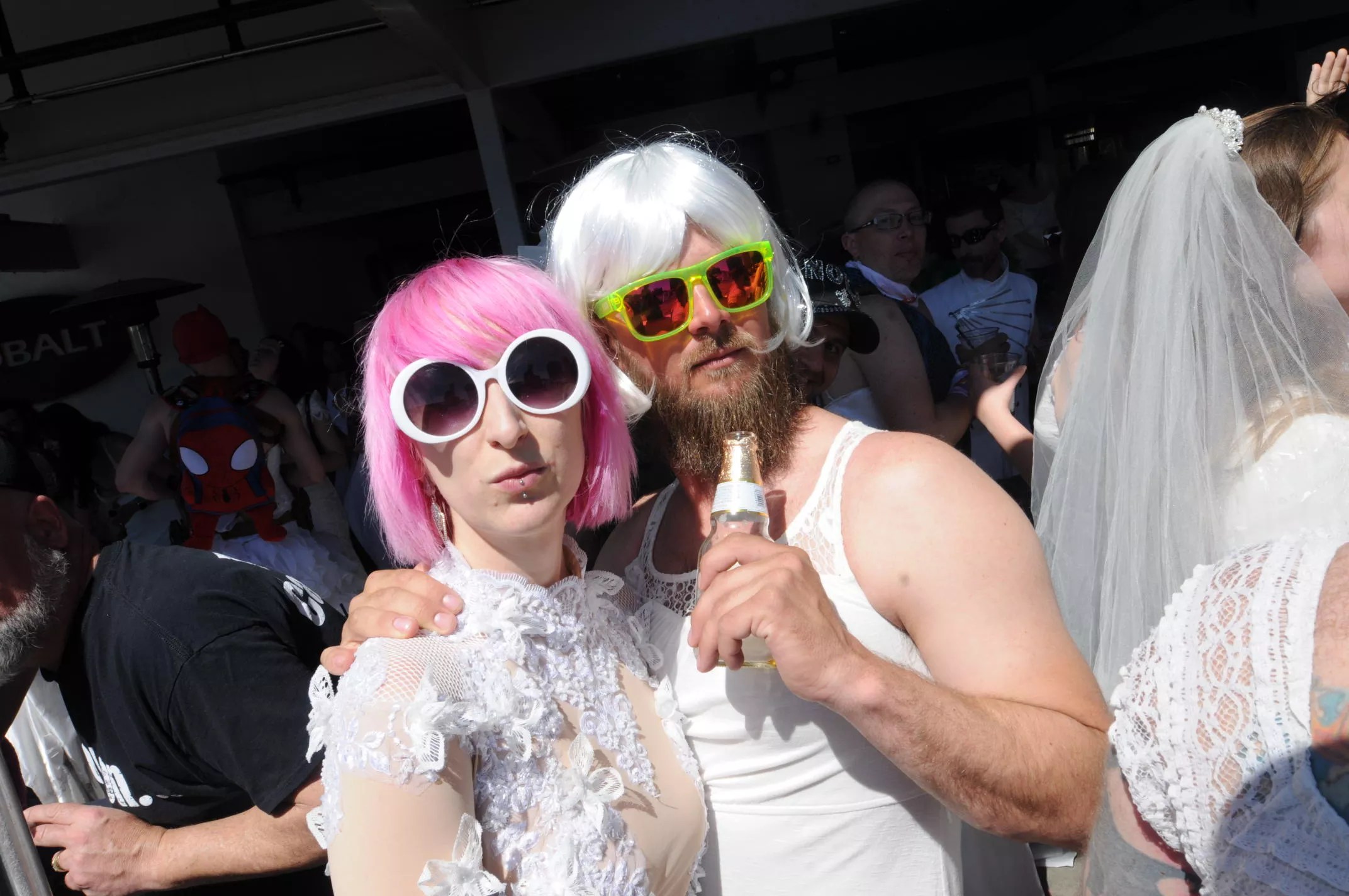 Picture this scene: a chaotic mass of men and women dressed in wedding gowns engaging in drunken antics, including singalongs, footraces, and playful banter. Is this a scene from the latest reality TV shitshow? Nope. Just a sample of the nuptial-themed bar crawl known as The Brides of March.