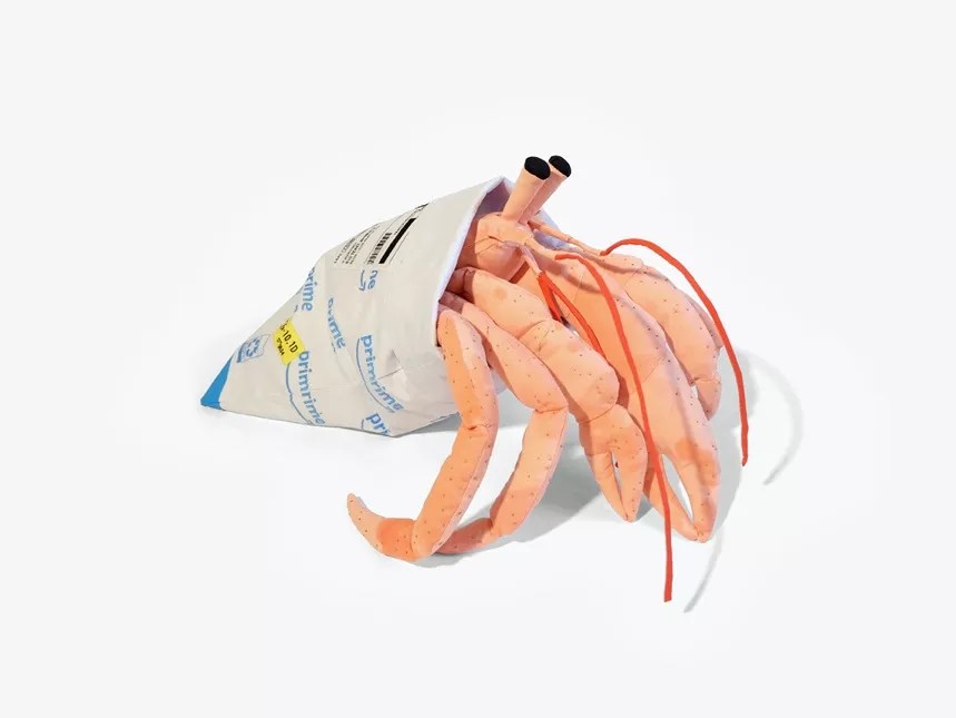 Mimi O Chun, Prime Hermit, 2021; fiberfill, armature wire, cotton cloth, embroidery floss; 18 x 12 x 12 inches.