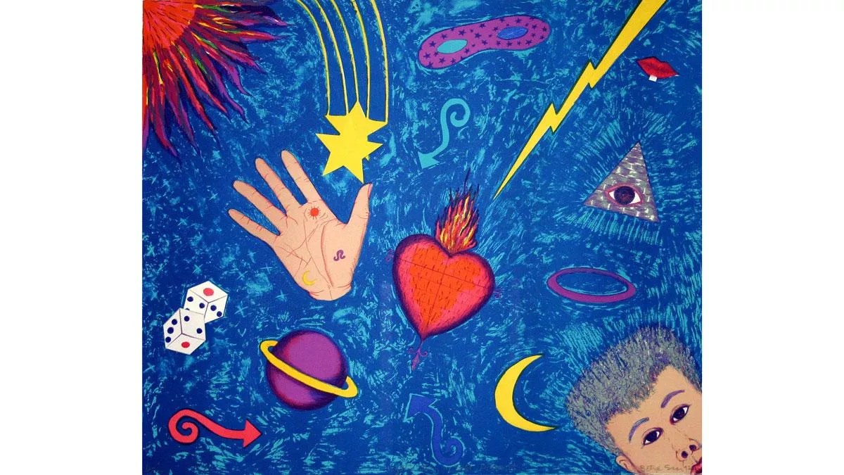 Betye Saar, Mystic Sky with Self-Portrait, 1992, Offset Lithograph, 21 1/2 x 25 1/4 in. Gift of the Brandywine Workshop and Archives, Philadelphia, Pennsylvania.