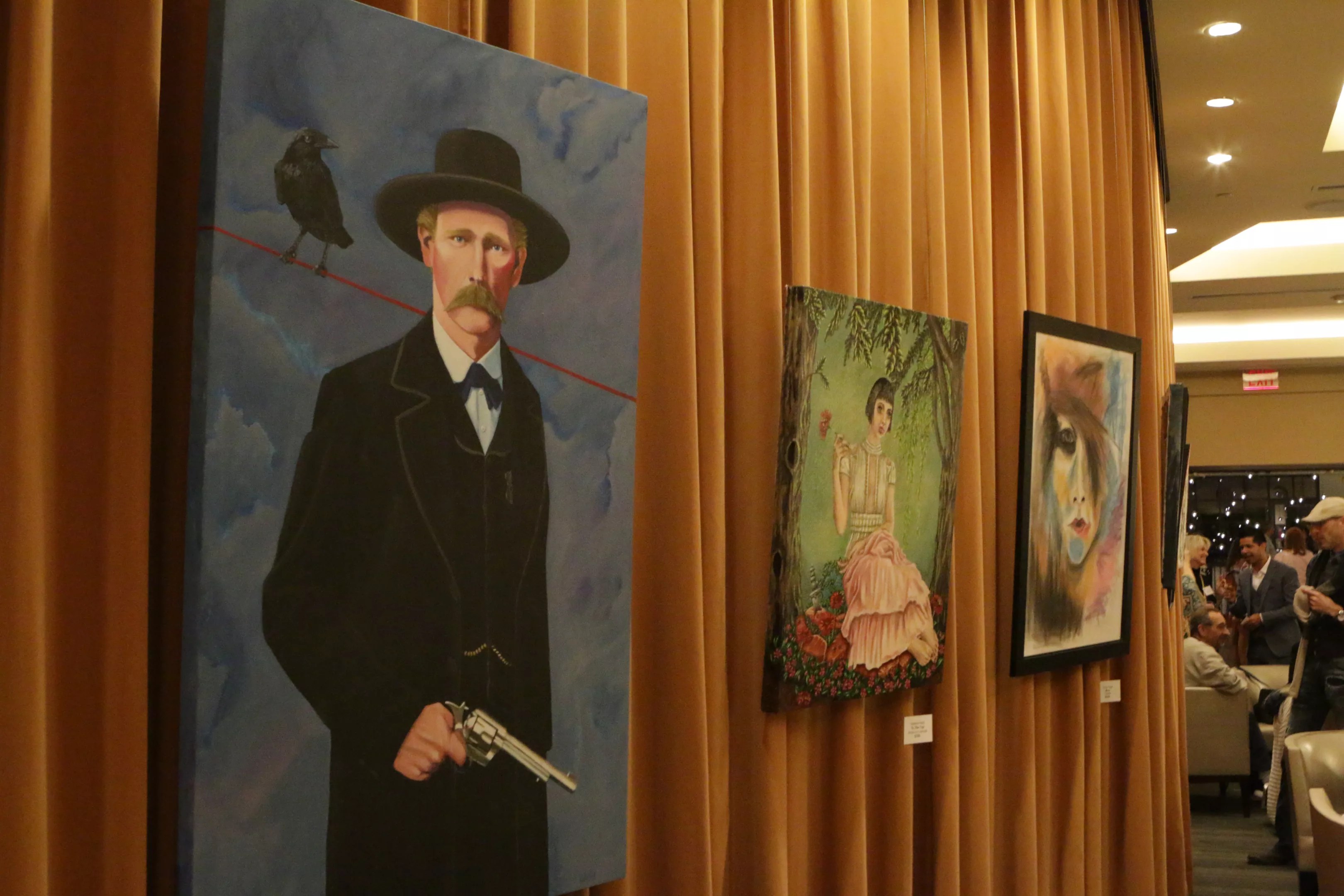 Outside, performers young and old took the stage to preview and commemorate the opening of Cabaret. Inside, the vibe was more regal as two fine art exhibitions hosted opening parties. The final chamber of the facility, Bob’s Spot Gallery Lounge, hosted the evenings most focused event, “Portraits.” Along the long room’s golden curtain sidewall hung a collection of 17 portraits by Arizona artists.