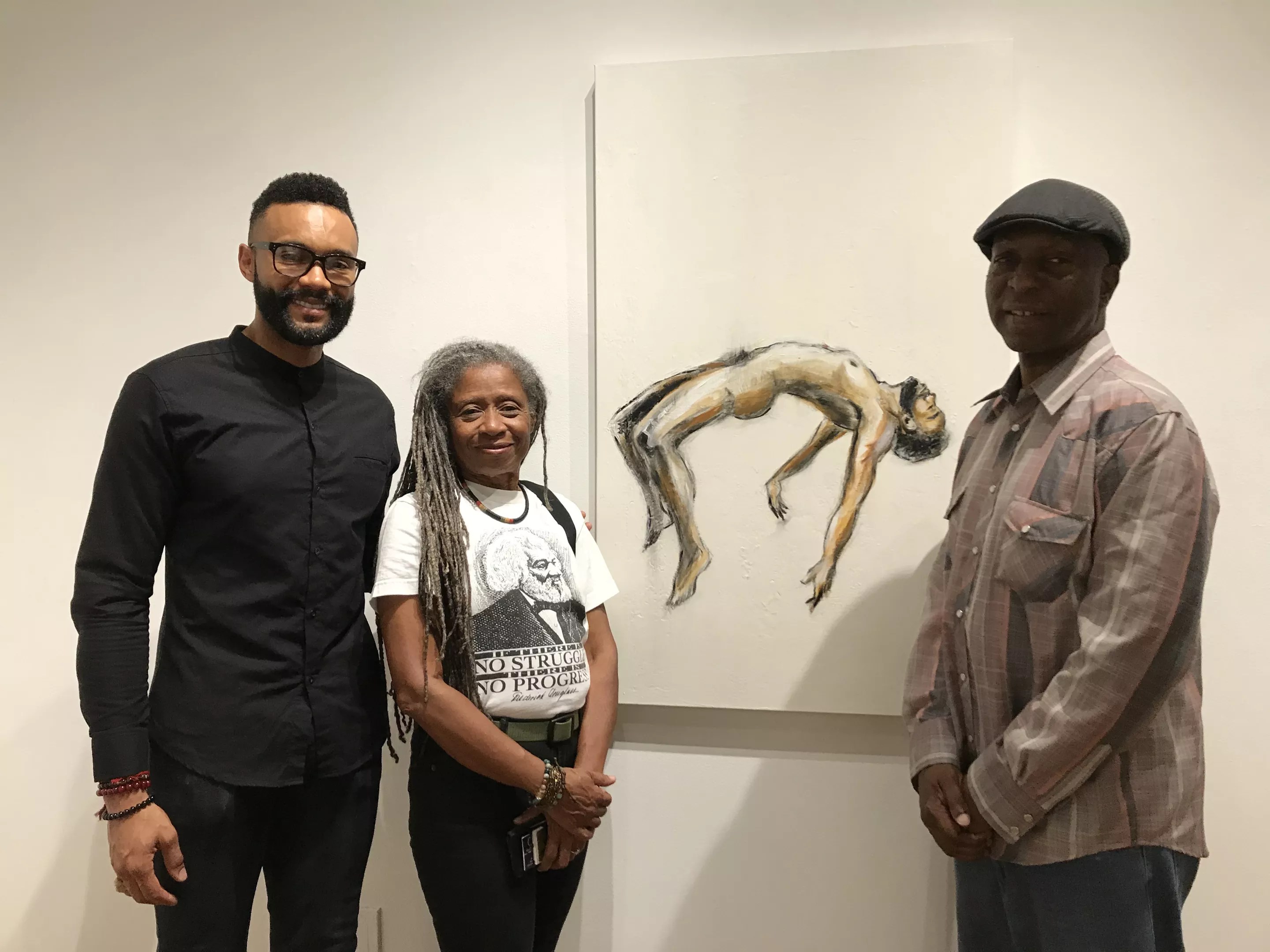 Participating artists include C.A. Hammons, Michael Massenberg, Nicholas Murray, and Leonard Wilson. Walking through the gallery, Murray paused over several of his paintings, elaborating on the feelings wrought by systemic racism – including the anger signified by his use of the color red. And