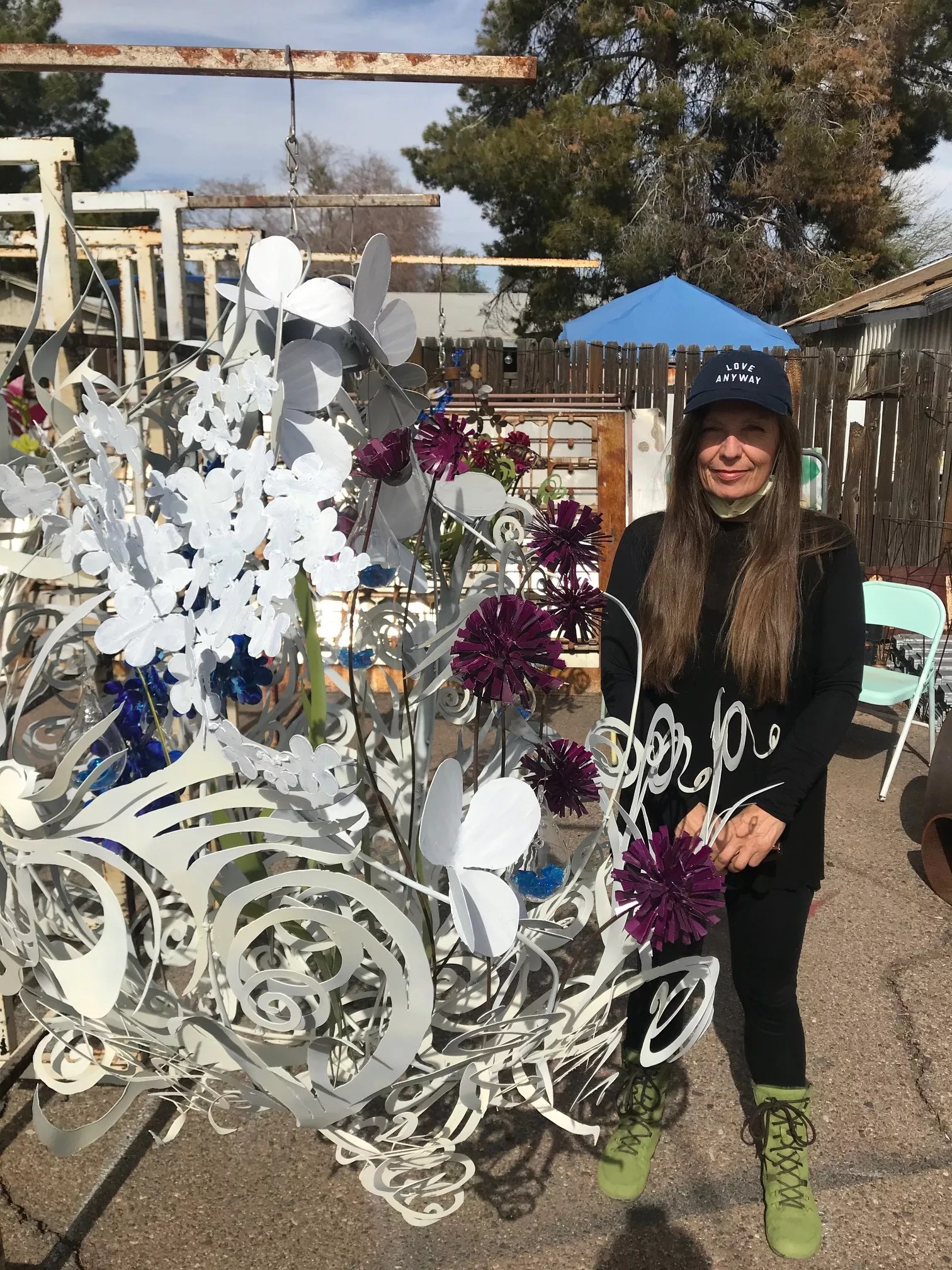 Jones kept teaching and improving her own welding and eventually became a plasma-cutting artist as well. She won first place in metal in the 2019 Sedona Annual Art Show and sold a selection of her lighting fixtures to the Kimpton Boutique Hotel in Bozeman, Montana.