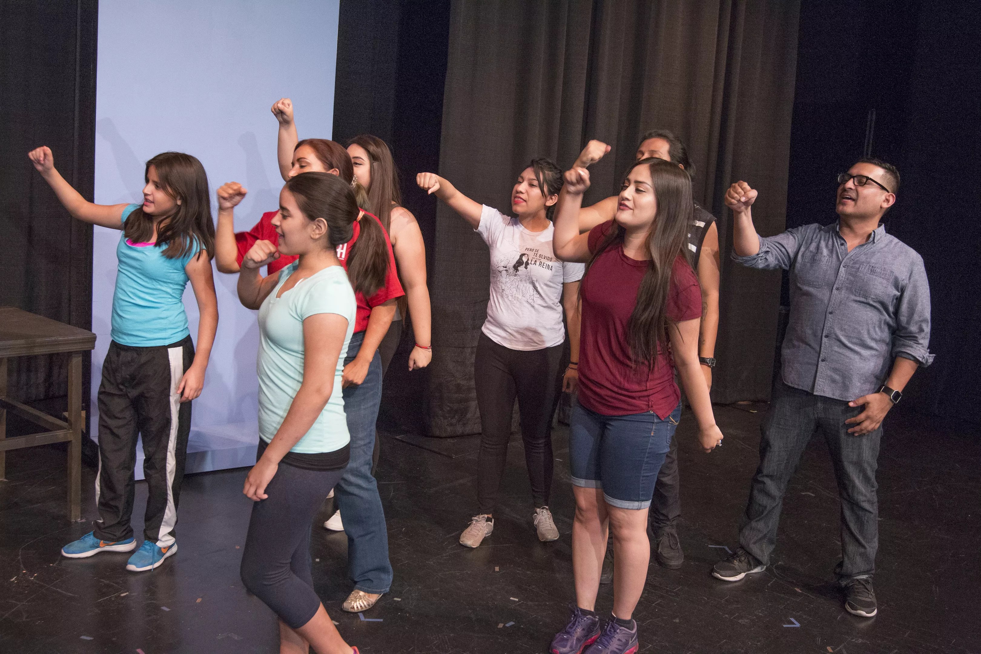 New Carpa Theater Company rehearses a protest scene in 1070.