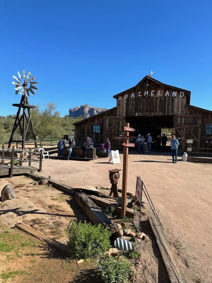 If you are coming from the west, the splendor of Superstition Mountain approaches but the steeple of the “Elvis chapel” is probably the first man-made landmark you see. Turn into the gravel lot to park.