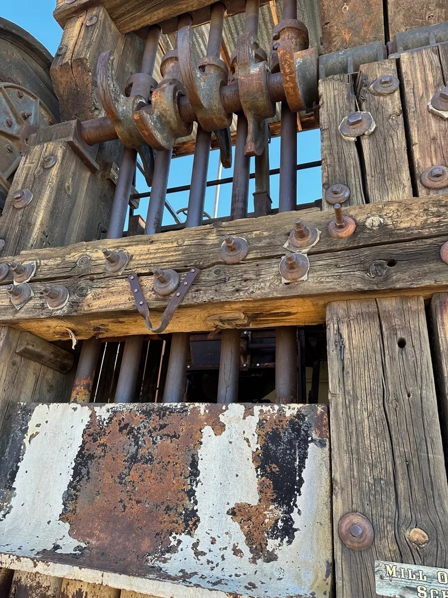 The giant 20-stamp ore mill is a transplant from Bland, New Mexico.