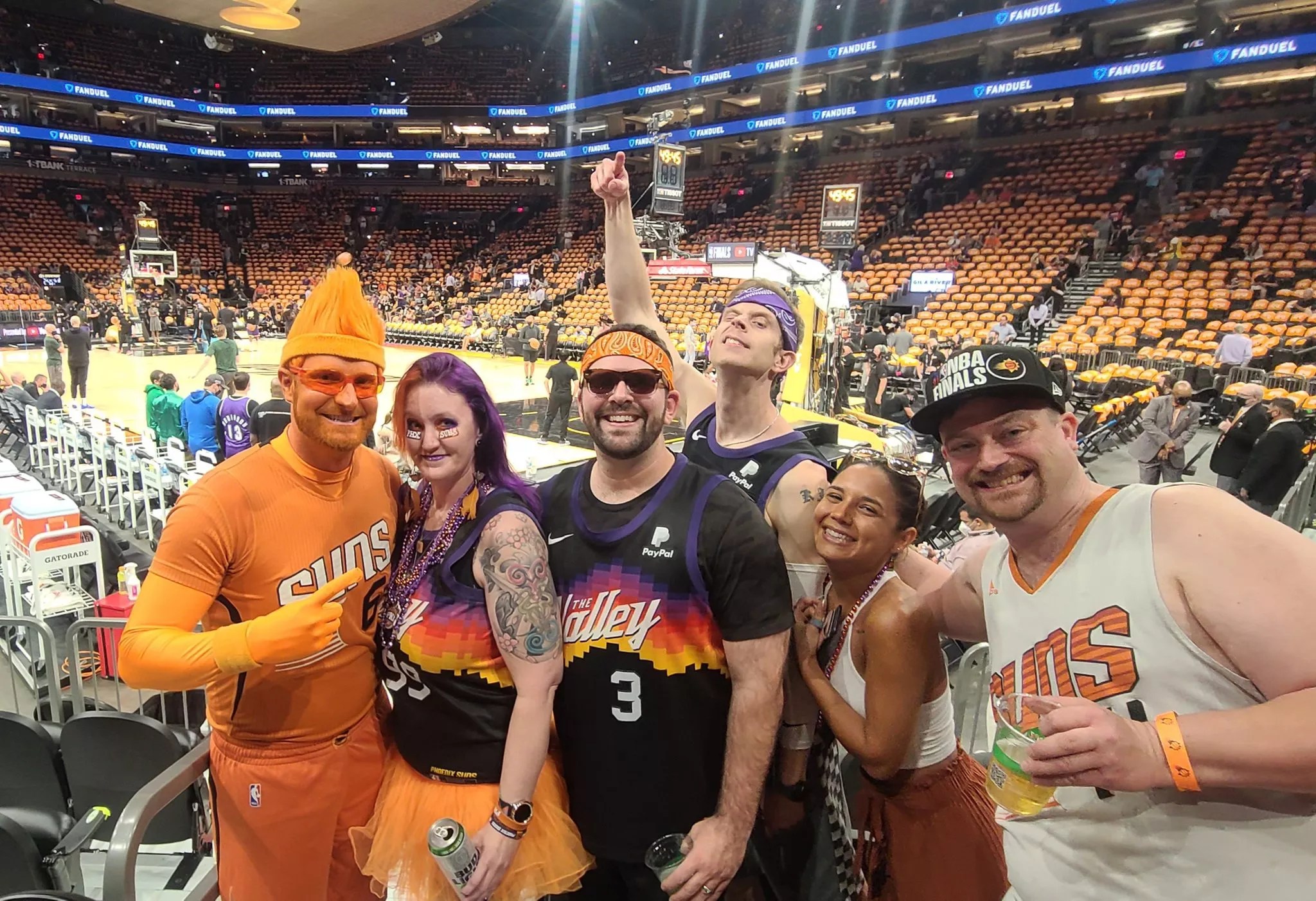 Suns superfans (from left) Angelina Solis, Kevin Arnett, Paul Nicosia, and Veronica Philpot.