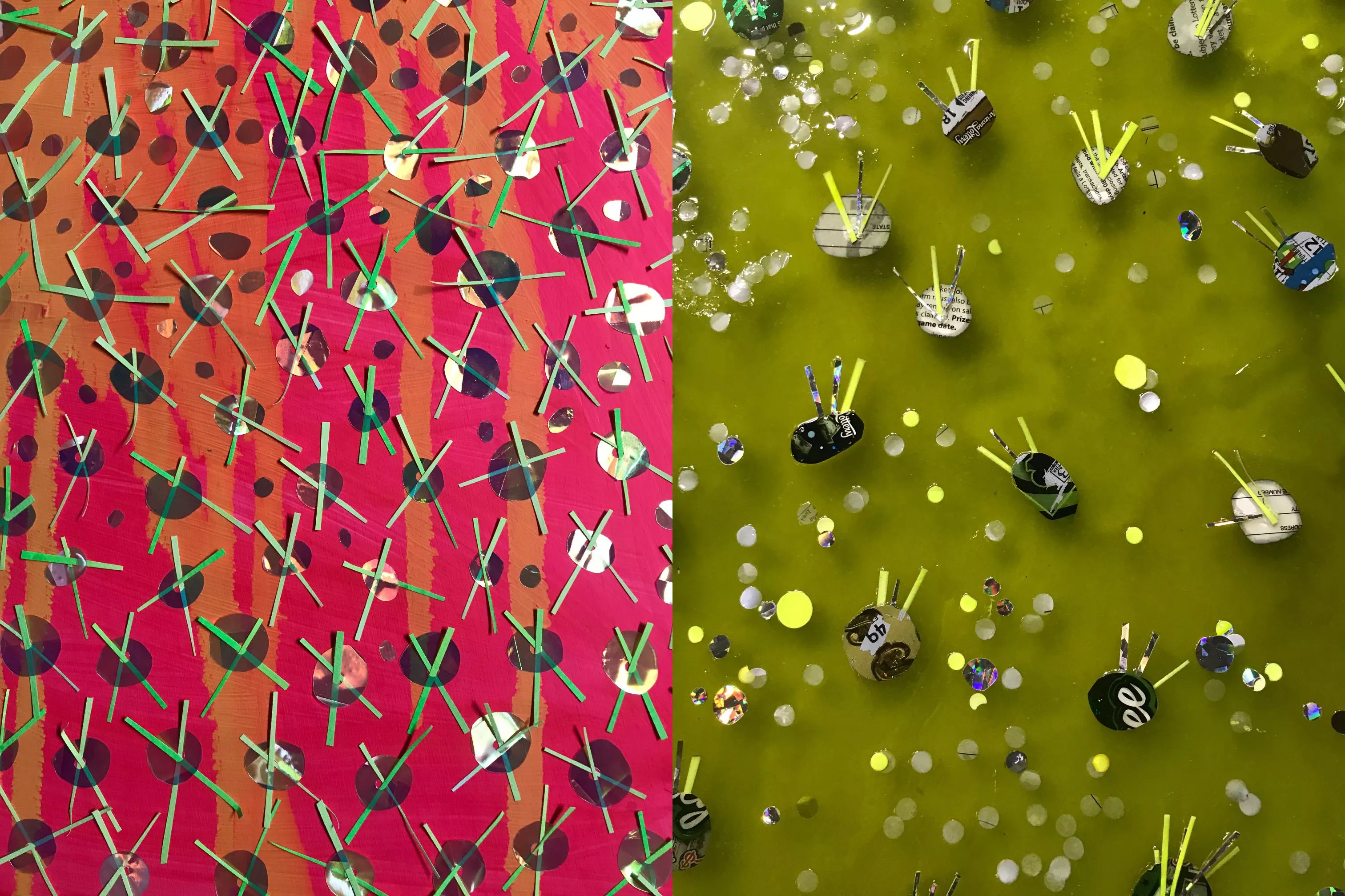 That doesn’t mean there’s no message in their medium. “With most of my work, I want it to be fun but I want to be sure there is some deeper reaction,” Hurwitz says. “I’m always mindful of how much trash I’m making, and there’s irony in making pretend garbage for an exhibit.”