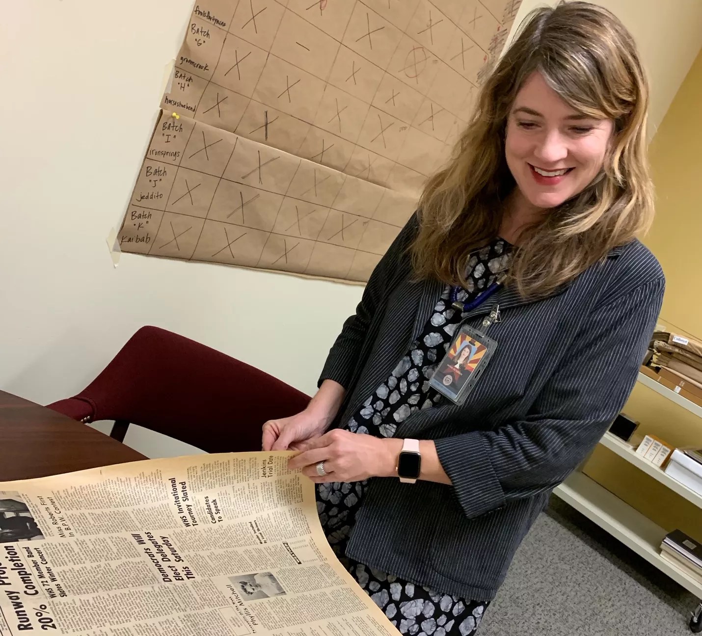 Peterson spoke from the bowels of the State of Arizona Research Library, where she works as the news content program manager. “It means I’m a newspaper librarian,” she explained. “I oversee our newspaper collection, the largest in the state. We have more than 700 titles.”