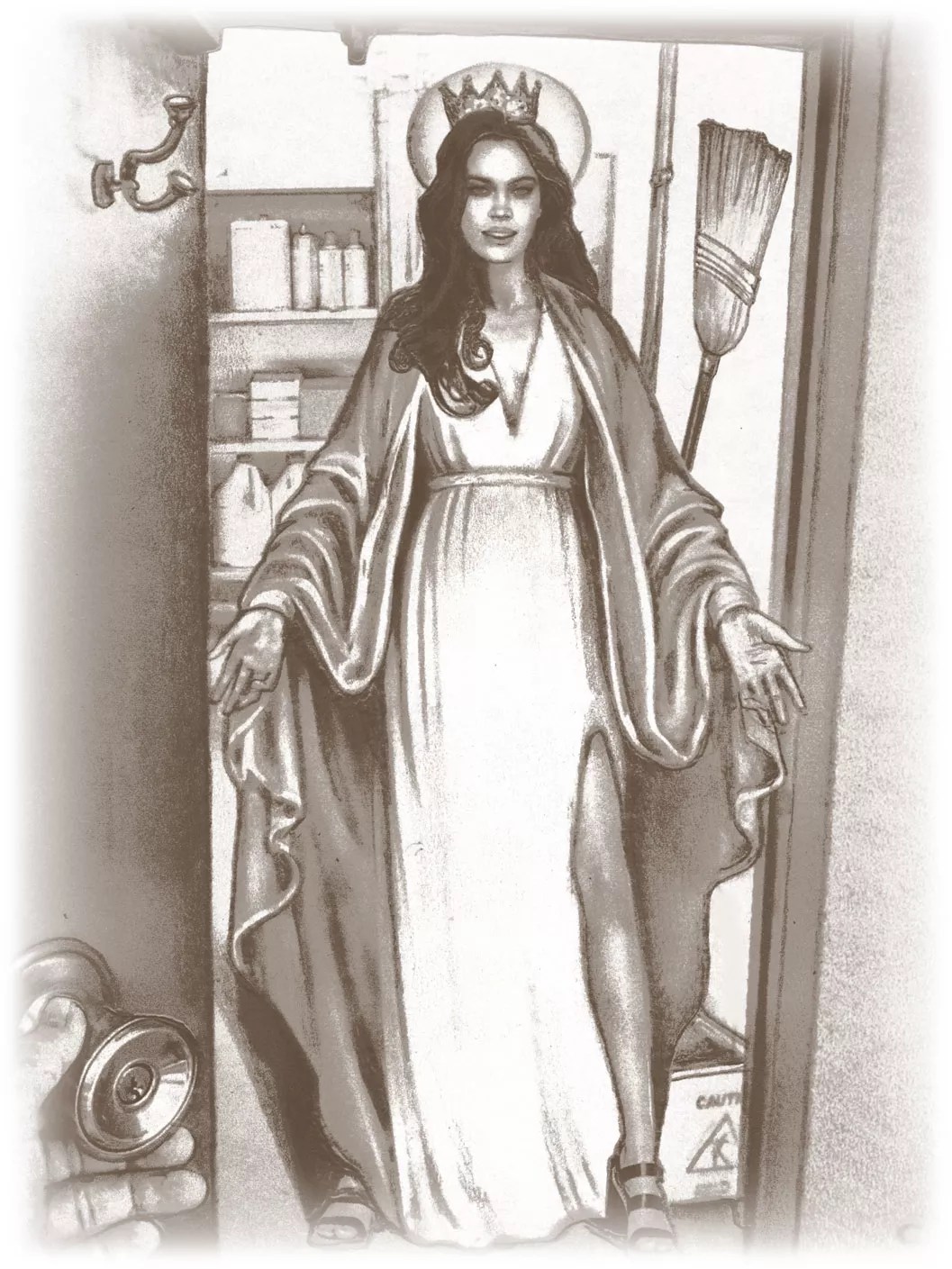 I later learned that, upon delivery, the pastor rejected this 5-and-a-half-foot-tall statue of Mary and, not knowing what else to do with it, the head janitor tucked it away in the maintenance closet. He did not wrap it or place a sheet over it. He just sat it right inside the closet, facing out, and he never warned me.