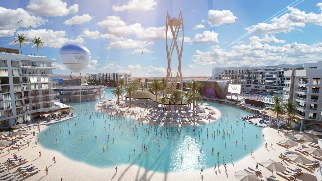 Both the resort and theme park have been pushed back multiple times since they were announced. VAI Resort, originally known as Crystal Lagoons, has faced repeated construction delays. Acquired by VAI Resort LLC in 2022, the project’s opening was delayed from spring 2023 to 2024 and then into this year.