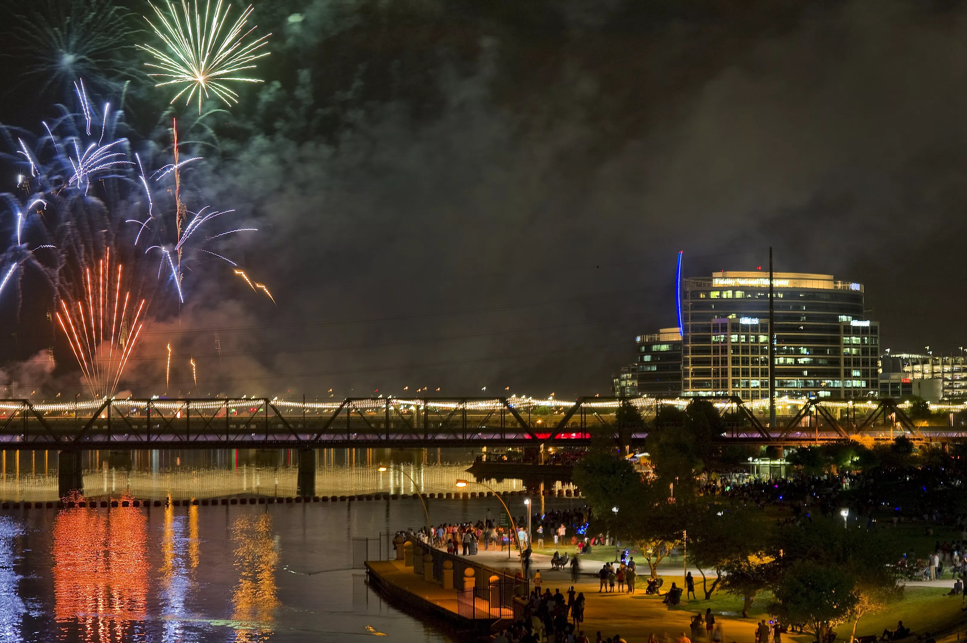 Fireworks over Tempe Town Lake in 2014.