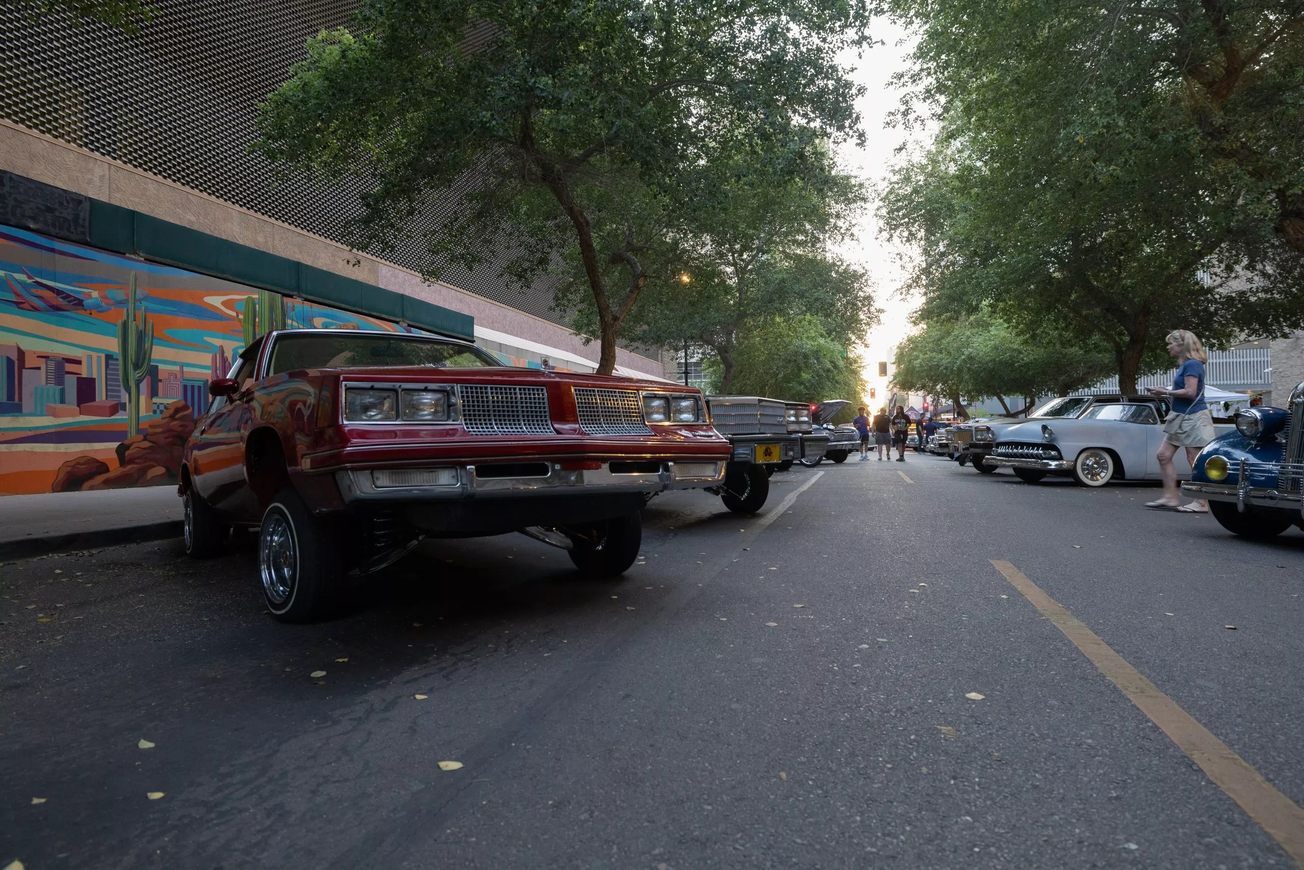 People in downtown Phoenix admire lowrider cars from bygone eras during the second Saturday of the month car show.