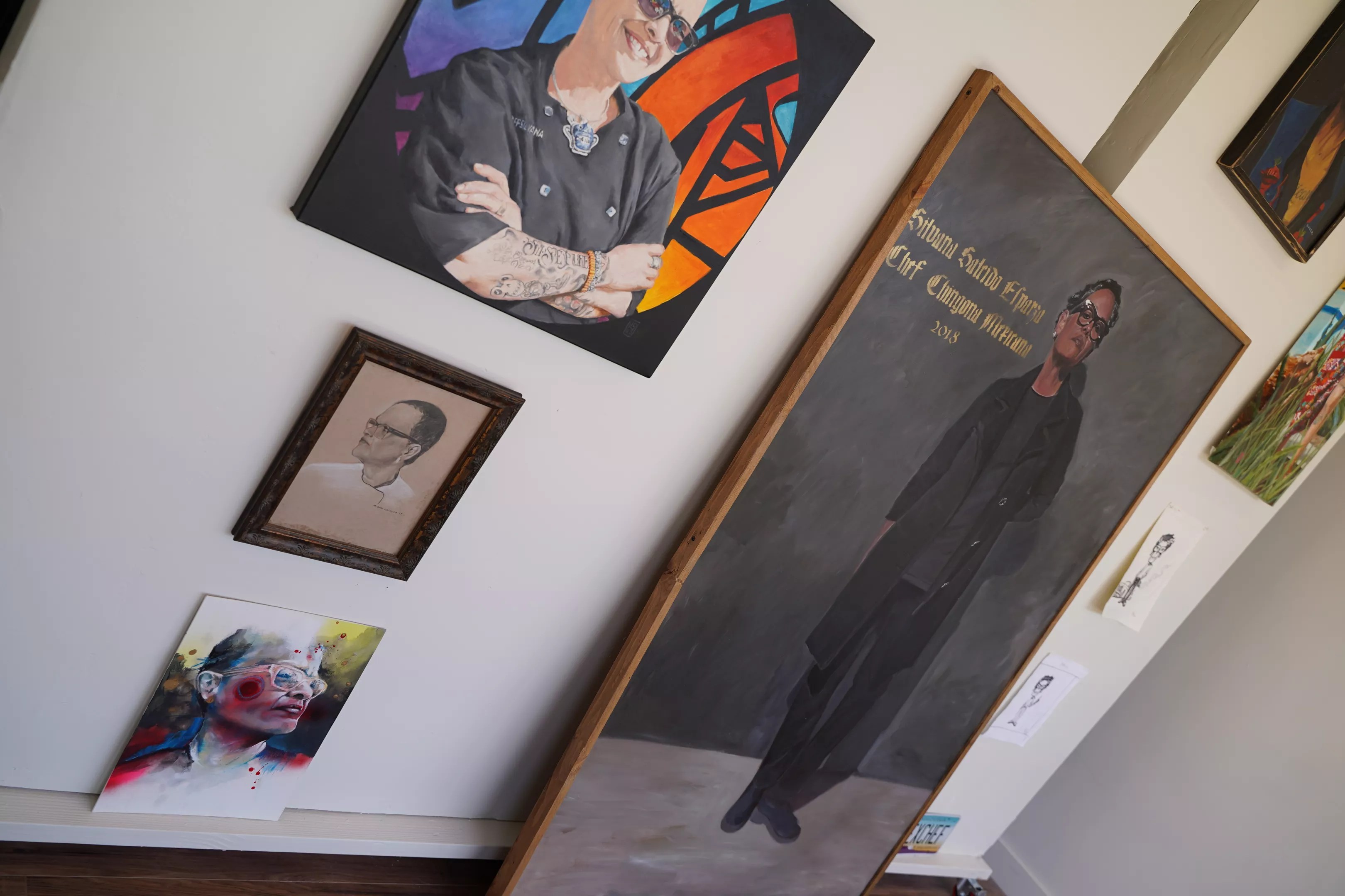 Chef Silvana Salcido Esparza surrounded by art inside Barrio Cafe.
