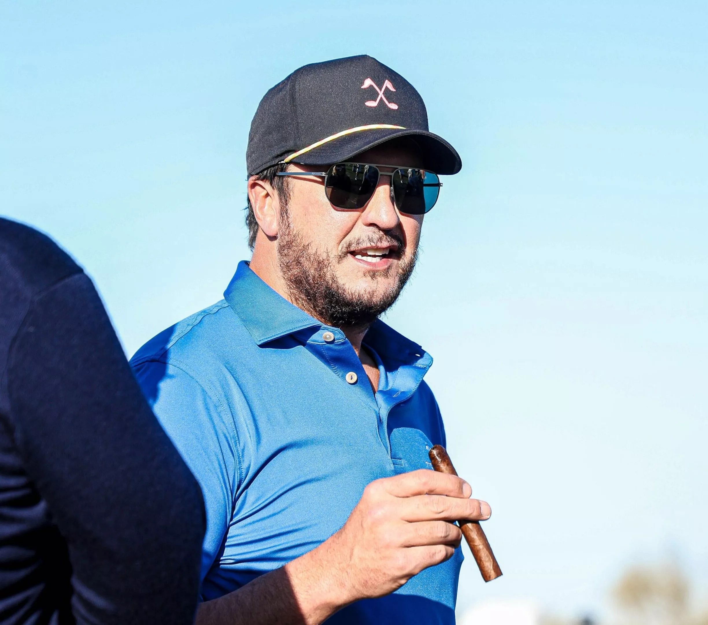 Country singer Luke Bryan enjoys a cigar during a break in competition at the WM Phoenix Open celebrity Annexus Pro-Am.