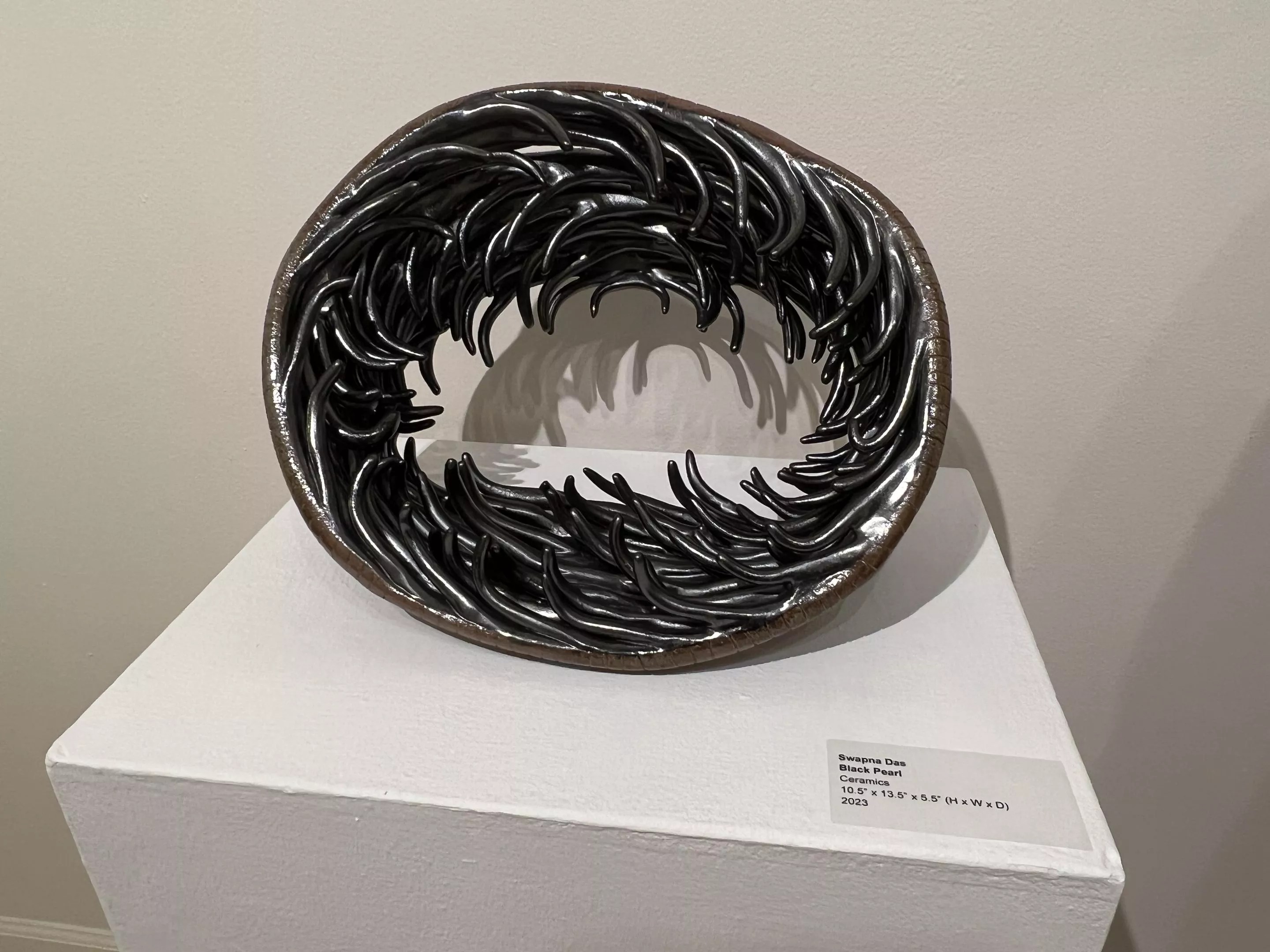 707 N. Third St., #130Opening tonight at Cahokia is the exhibition “We Are Still Here” by Lauren Thurston, which “intricately weaves her extensive tattooing background with her proud Taino heritage, offering a vibrant celebration of resilience and cultural presence through botanical, skeletal, and critter motifs alongside ornamental designs and lettering,” according to the gallery. First Friday hours are 6 to 10 p.m. “Black Pearl,” a sculpture in Eye Lounge’s group exhibition “Anecdotes & Myths,” reflects the inner darkness of its maker, artist Swapna Das. Jennifer Goldberg
