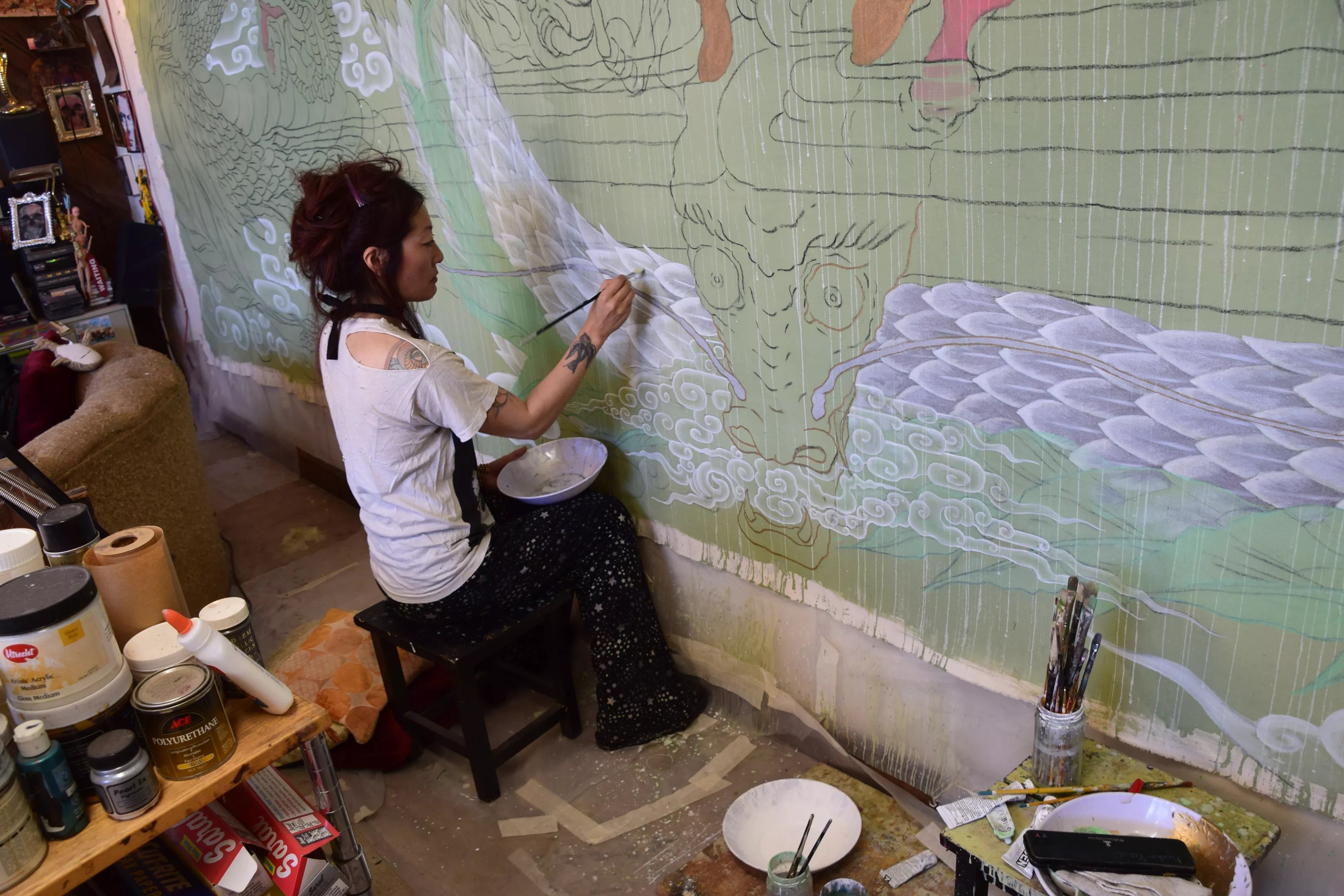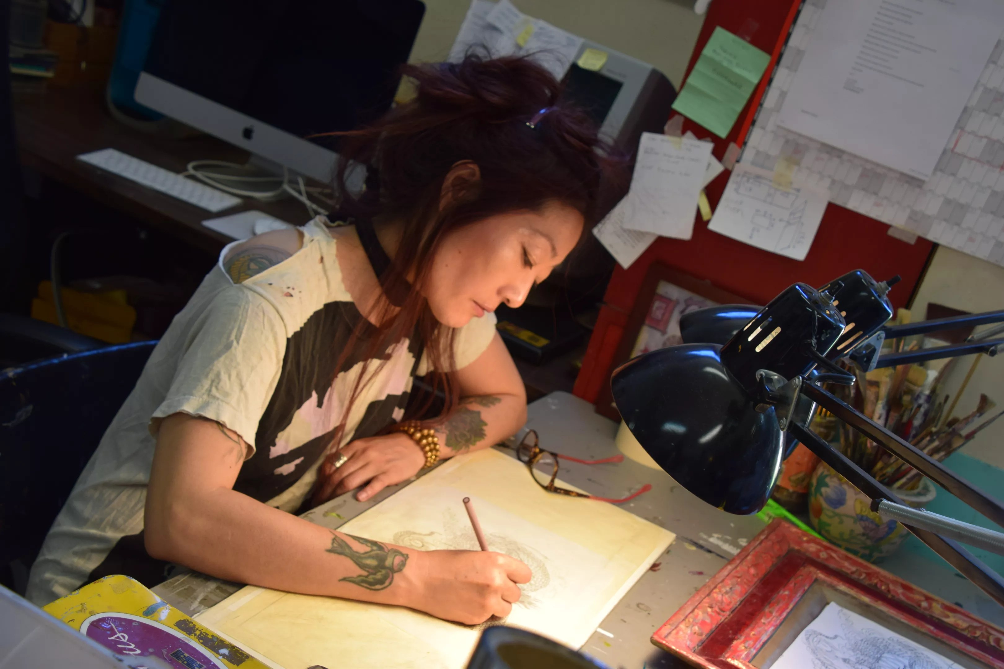 Yuko Yabuki works on a dragon drawing in her Tempe studio.