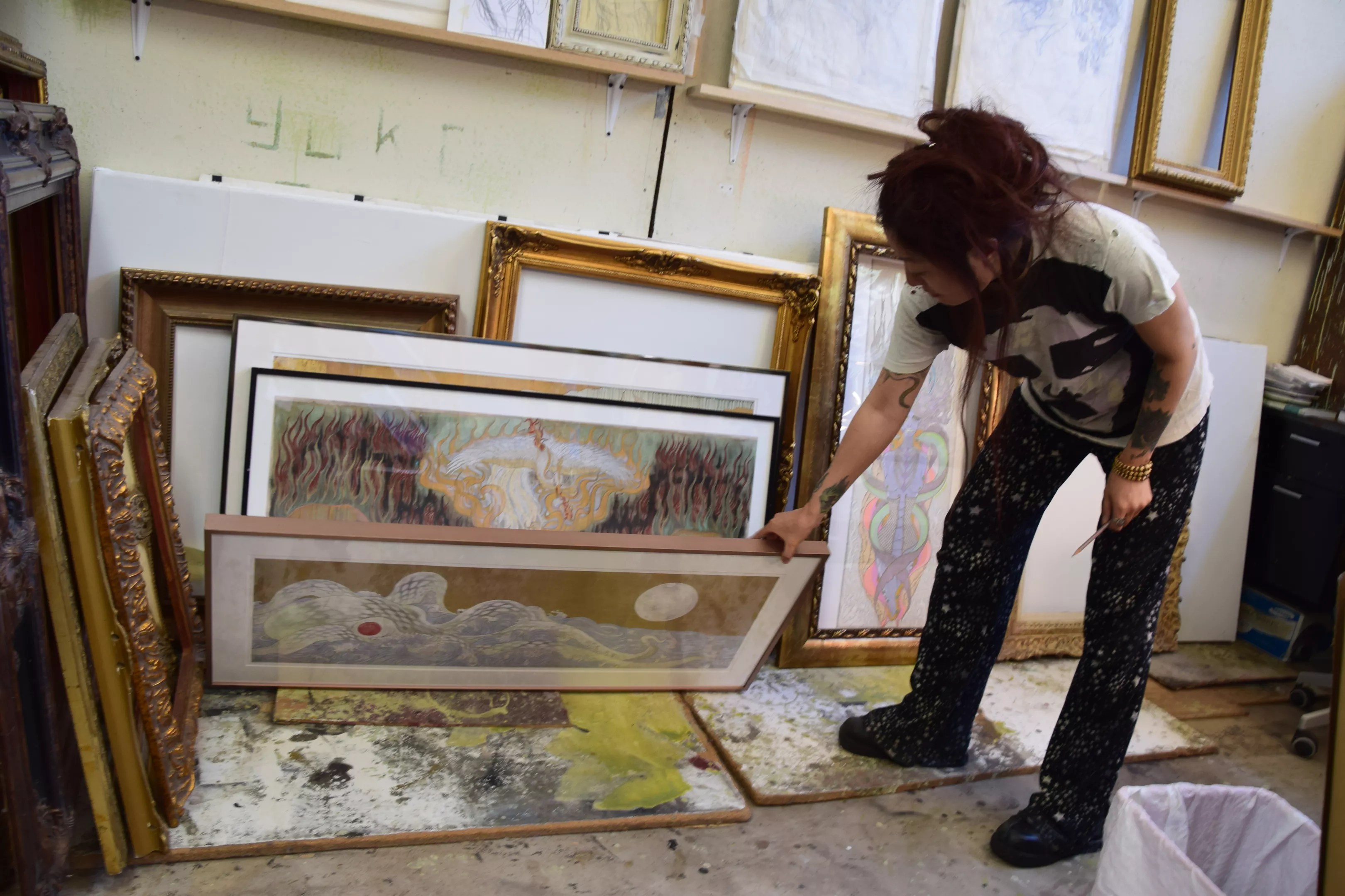 Yuko Yabuki sorts through several of her works inside her Tempe studio.