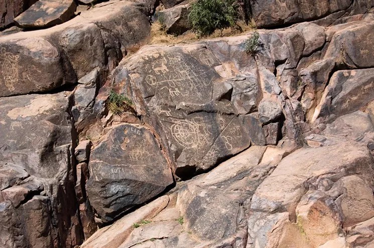 At around a half-mile, South Mountain, Camelback Mountain and Sombrero Butte will come into view. Continue another half-mile, and you will be entering Hieroglyphic Canyon; keep along this trail and within about five to 10 minutes, you will reach a large rocky area with several small pools of water and scores of Hohokam petroglyphs. You may be wondering why it isn’t called the Petroglyph Trail. It seems to be that a misunderstanding on behalf of early miners and settlers is to blame. Hohokams inhabited Central Arizona approximately 800 years ago, leaving behind large numbers of petroglyphs that early settlers mistook as Egyptian hieroglyphics.
