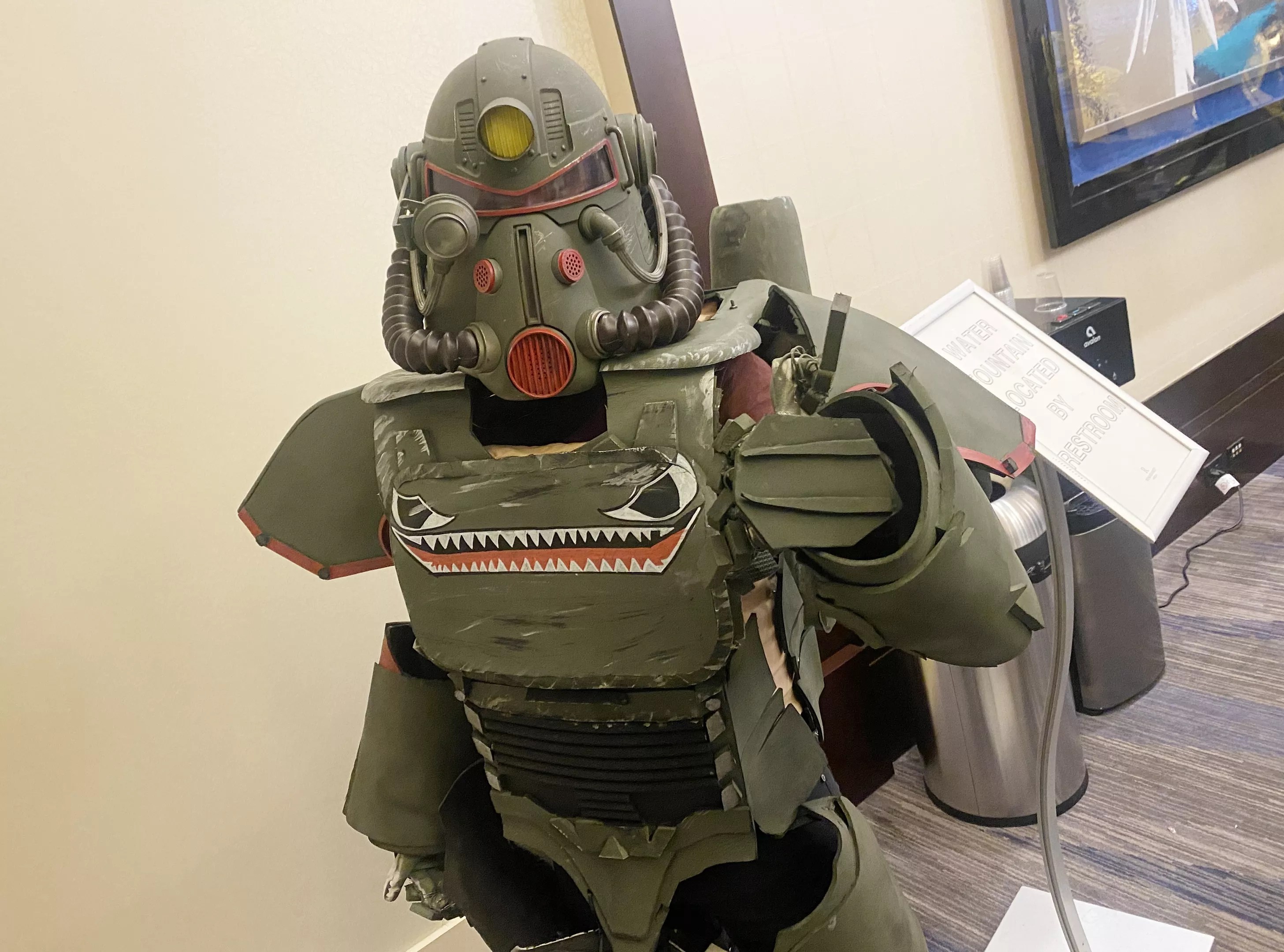 San Tan Valley cosplayer Hydrangia Workshop wore the T-65 Power Armor from Fallout 76.