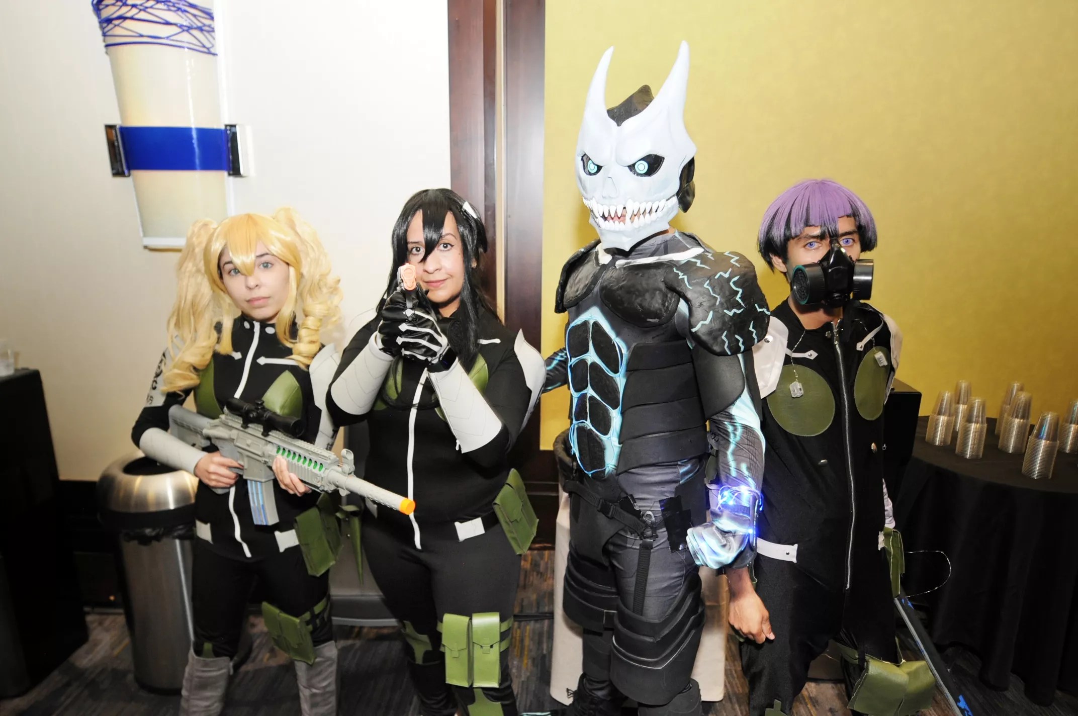 A group cosplay inspired by the “Kaiju No. 8” anime and mange series.