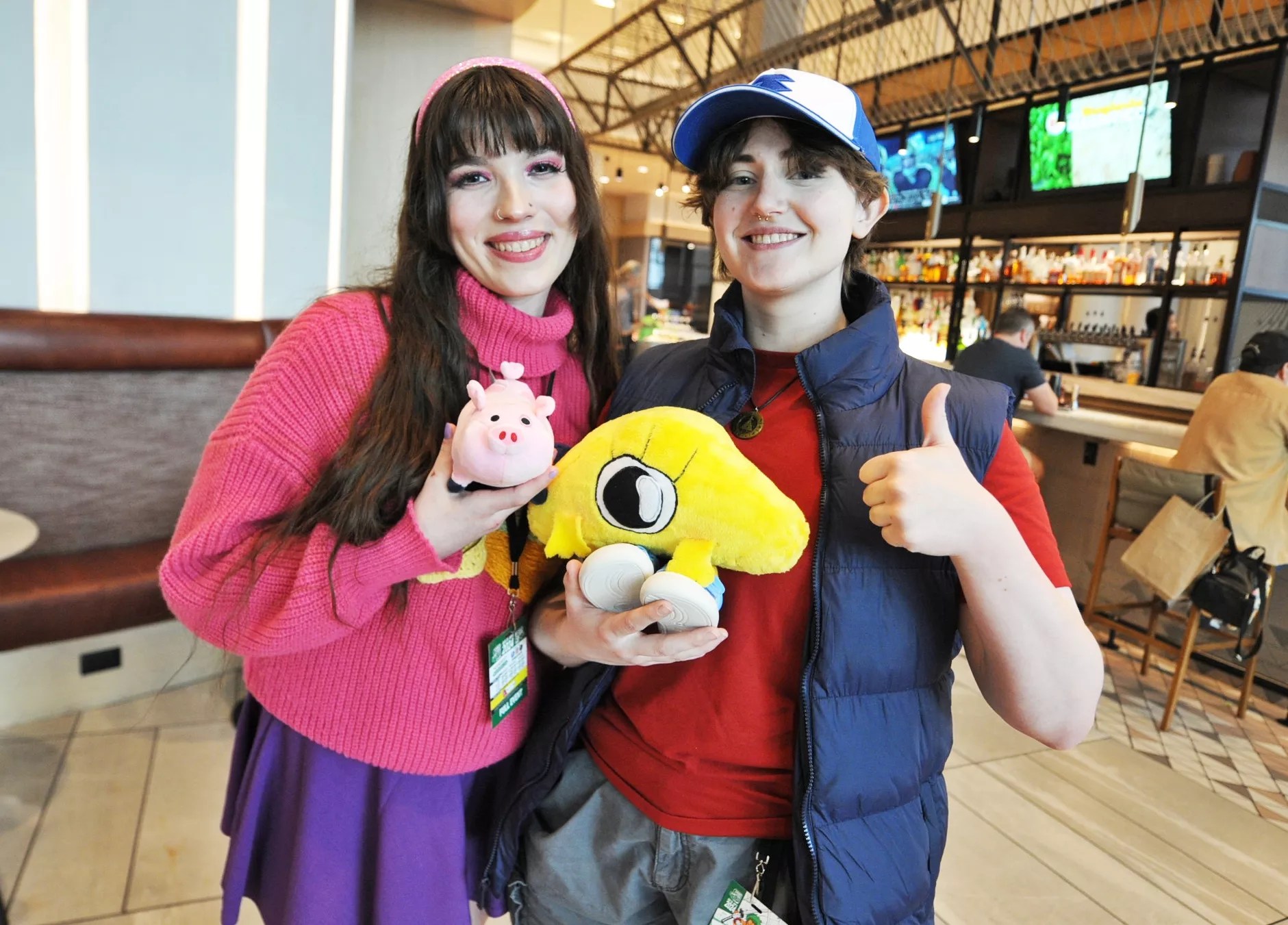 These friends cosplayed Mabel Pines, left, and Dipper Pines, right, from “Gravity Falls.”