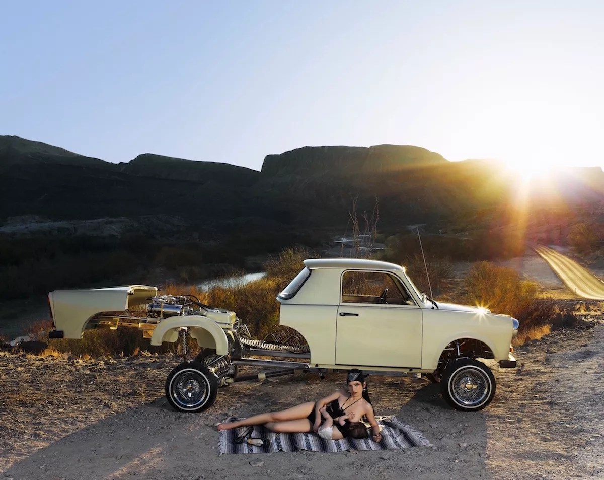 The exhibit will expand on Cohen’s best-known body of work, which included transforming an East German Trabant into an American El Camino lowrider titled Trabantimino, while also transforming her own body and creating performative work – including posing as a bikini model and customizing lowrider vehicles. The exhibit is tied to a nationwide Feminist Art Coalition project exploring the intersection of art, feminisms, and civic discourse.