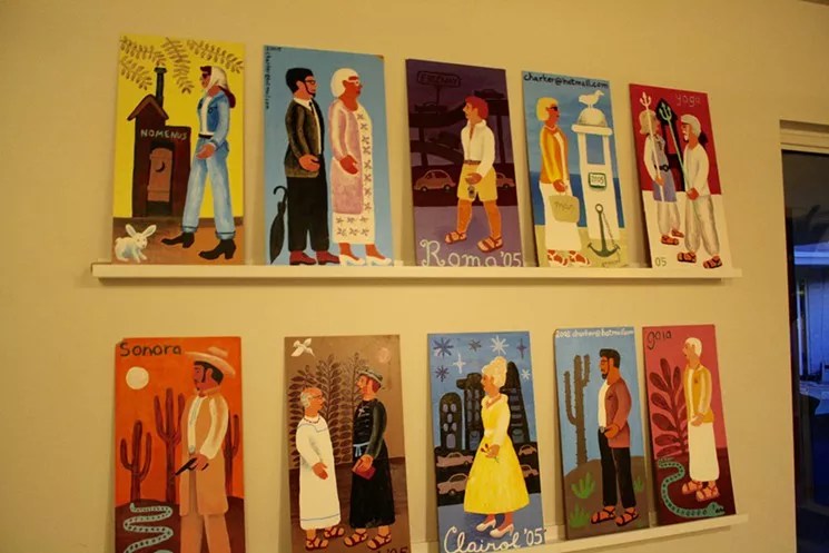 A collection of original works by artist Charlie Harker. “We picked these up at First Friday a few years ago,” Amy says.